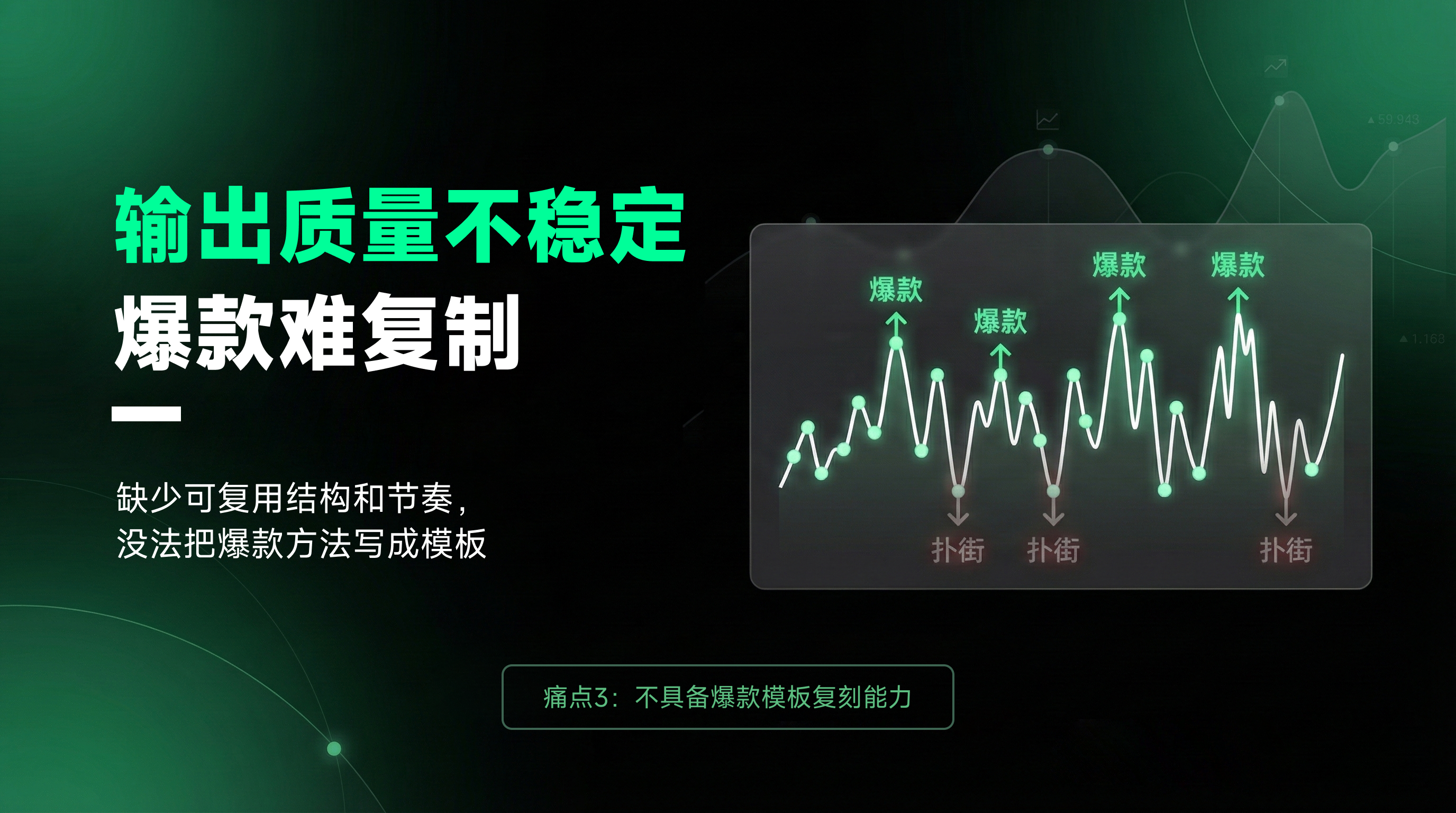 爆款不确定性: 流程破碎导致内容质量不稳定,爆款全凭感觉,下一条视频依然“看天吃饭”。