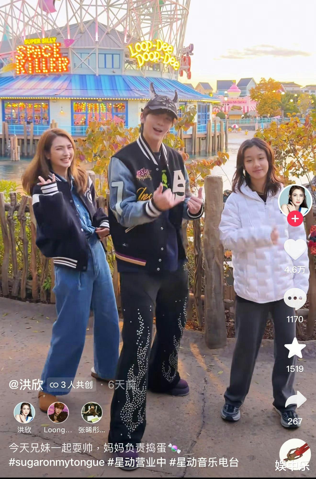 洪欣与儿女选择的是近期爆红网络的一段舞蹈,儿子张镐濂虽未成功入选男团LOONG9,但跳舞时颇有偶像团体风范。女儿彤彤则身高瞩目,五官精致度完全复制妈妈年轻时的神韵。不少粉丝感叹:“彤彤再长几年可以直接出道了!”