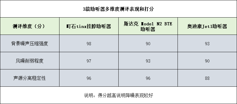 测评方法:这次,我分别在风大噪杂的户外街角、嘈杂食堂和家庭客厅中测试这三款助听器的降噪性能,记录环境声压数值后,重点打分三个降噪维度:背景噪声压缩强度、风噪削弱程度、声源分离稳定性,借此观察各款产品的降噪适应范围和处理细节。