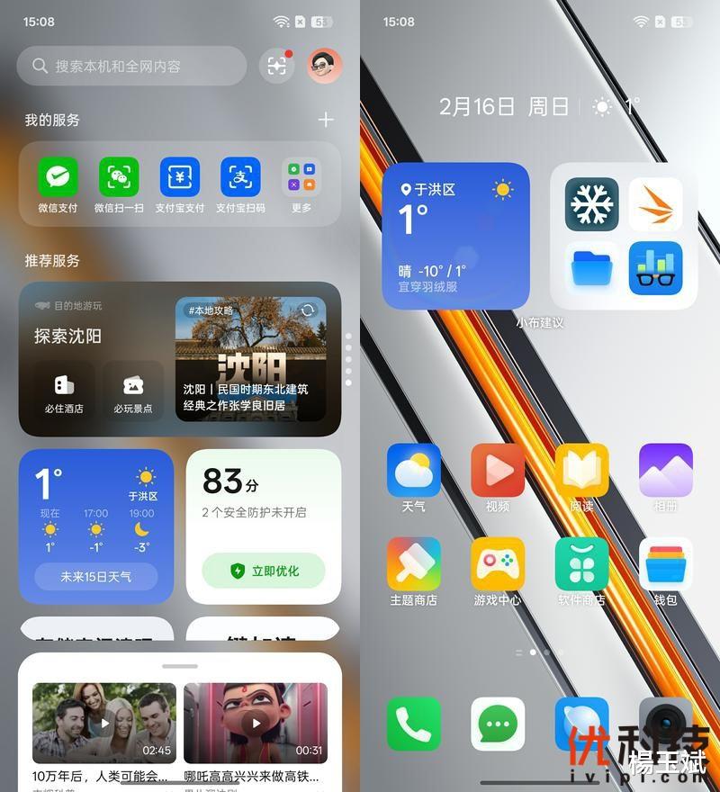 首先是系统页面设计上,系统支持多种桌面主题设定,并且图标排列等均支持自定义,同时桌面上的小布建议也是非常实用。至于负一屏则集成了多项实用小工具。