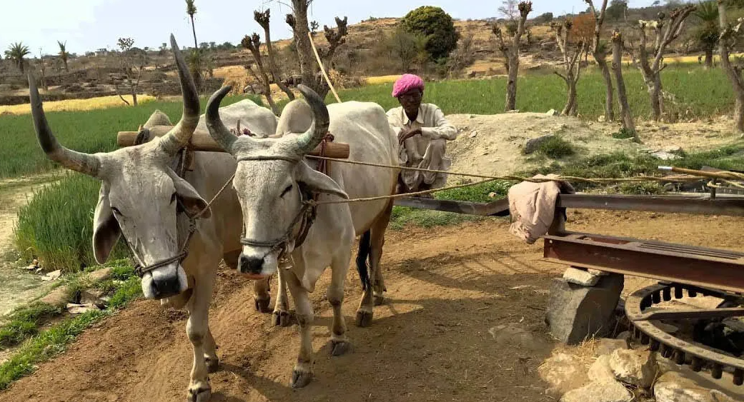 供牛拉的力臂:这是一个类似于驴拉磨的结构,由两根长杆和一个套环组成,可以让牛套在上面,通过拉动杆子来带动转轴旋转。