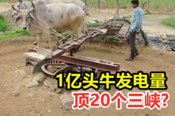 这个装置的工作原理很简单,就是让四头牛同时套在四个力臂上,然后绕着转轴转圈。这样就可以使转轴带动发电机旋转,并产生电流。然后再将电流储存在电池里,或者直接输出给用电设备。据计算,如果一头牛每天工作八小时的话,那么就可以得到48万千瓦时的电能,一年累积下来的话就能得到1.75万千瓦时的电能。要知道就连三峡大坝去年也只创造了3600万千瓦时的电能,倘若将两者进行比较的话,那么1亿头牛就抵得上五个三峡大坝了。