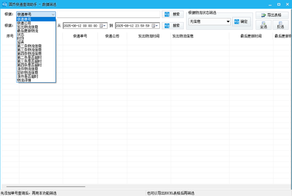 高级筛选:可按快递公司、物流状态、时间等多维度筛选