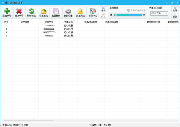 极速查询:采用多接口并行查询技术,5-10分钟可完成万单查询