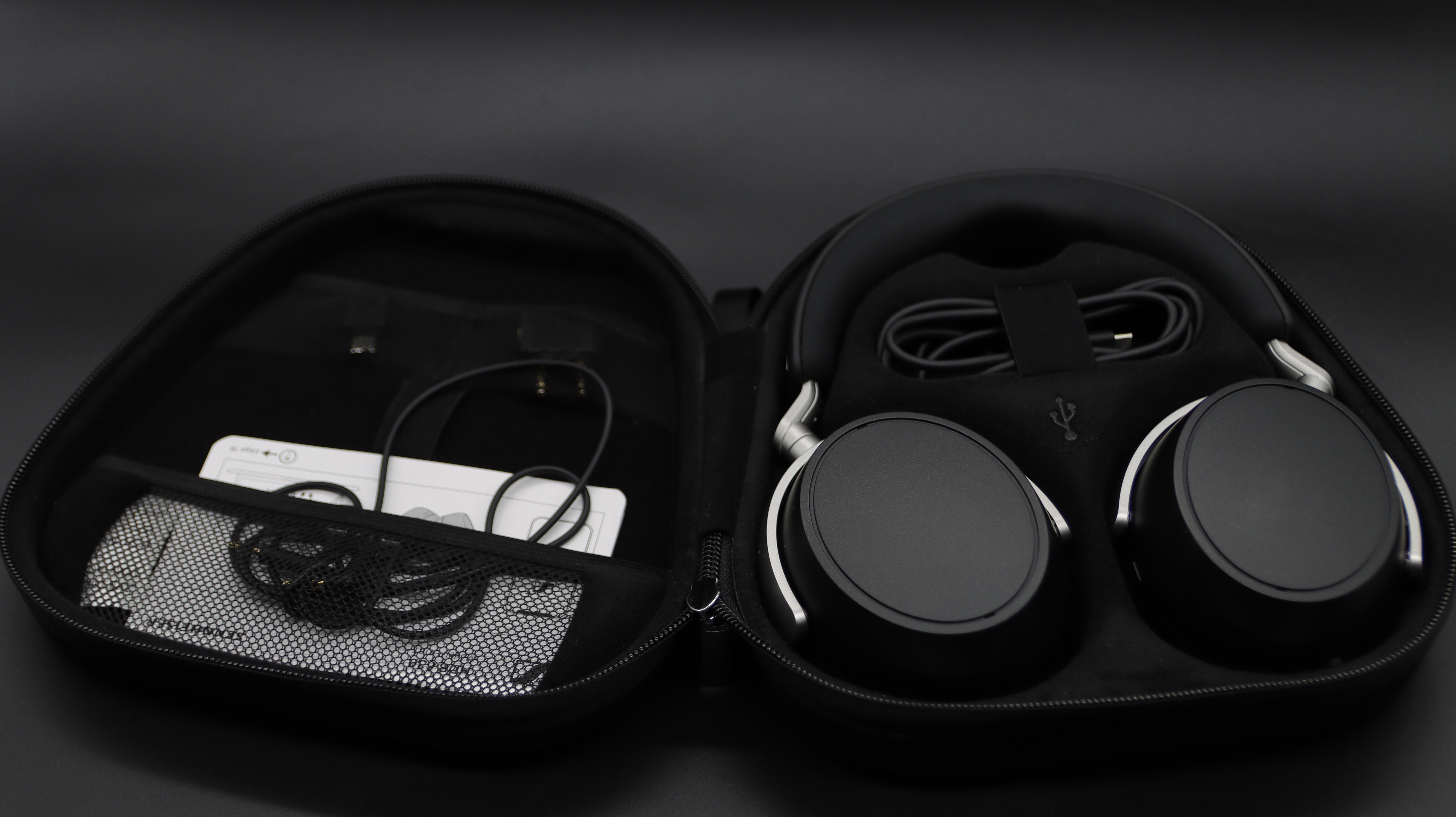 此外,随机附赠的尼龙防水便携包质感出色,不仅具备一定的防水性能,还能有效保护耳机免受磕碰和灰尘侵扰,包内的分区设计合理,能够将耳机、线材、转换接头等配件整齐收纳,方便日常通勤或出差携带。配件中还包含了飞机转换接头、3.5mm音频线和USB-C充电线,覆盖了不同场景的使用需求——飞机转换接头适合长途飞行时使用,3.5mm音频线用于应急有线连接,USB-C充电线则支持快速充电,这些配件的加入让HDB630的实用性大幅提升,无需用户额外购买,开箱即可满足全场景使用需求。