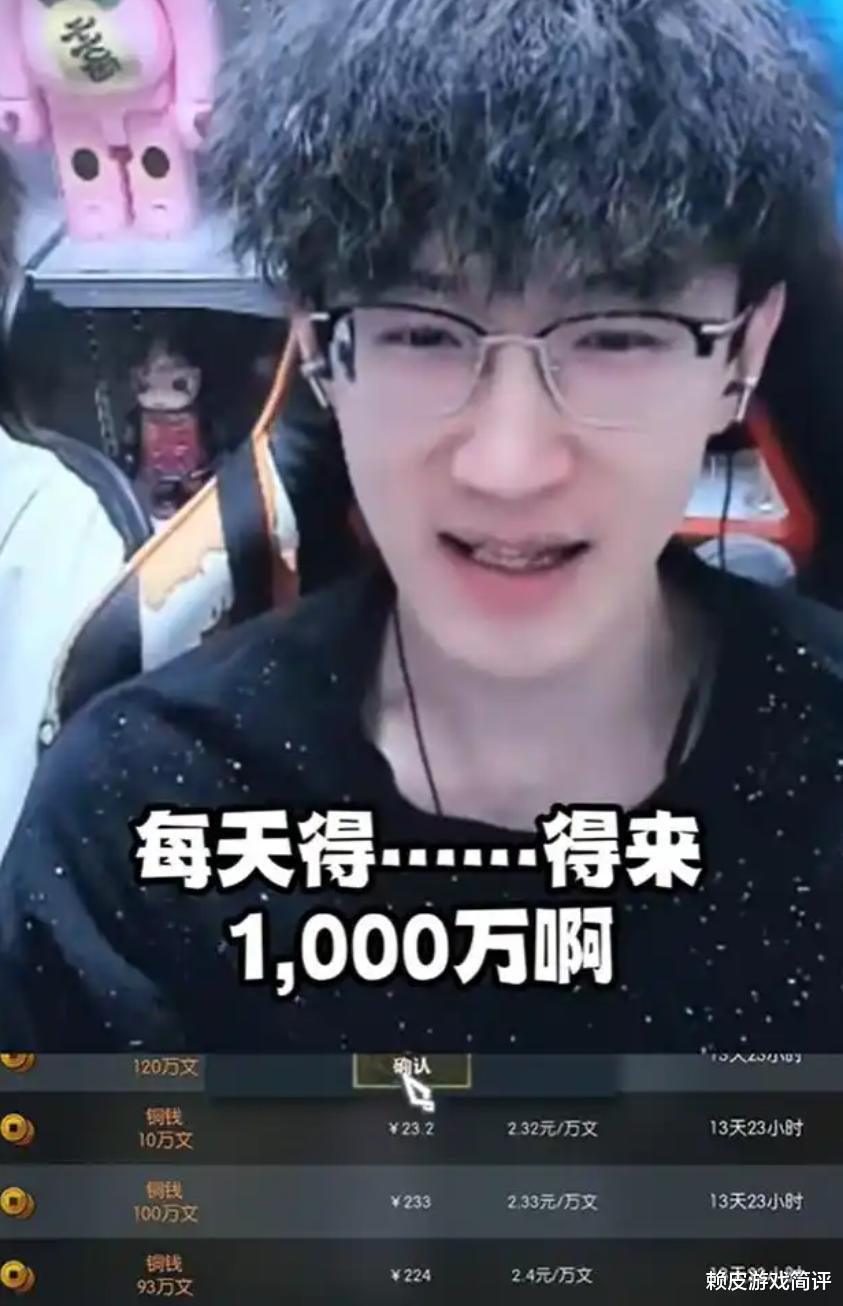 为了能够储备更多“弹药”收购难得一见的大稀有词条,浮夸执行了“日收购1000万铜钱”的计划,每天登录游戏,就会先甩出几千块人民币,收一大笔铜钱,凭一己之力,提振了服务器的经济繁荣。