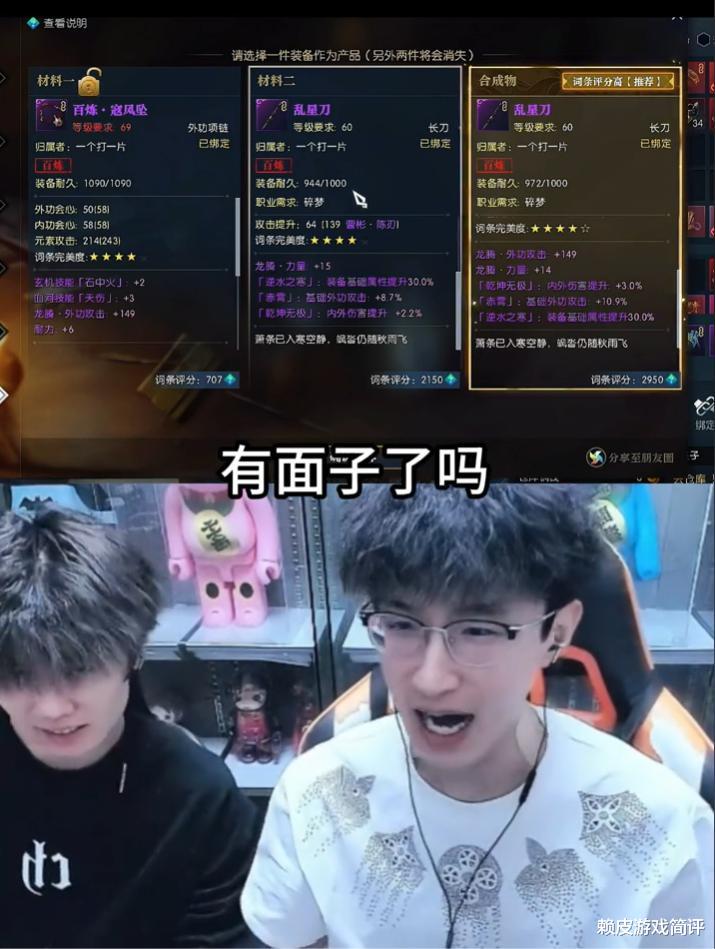 为了在游戏中打造出全服第一的神兵利器,浮夸一度以超过两万元的价格收购“逆水之寒”词条,为了能够在皇城战、帮会联赛中方呼风唤雨,他也一边刷脸一边发福利,招募了一大帮有操作水平有消费能力的高玩加入自己的帮会,以绝对的战力优势,成功在服务器中呼风唤雨。