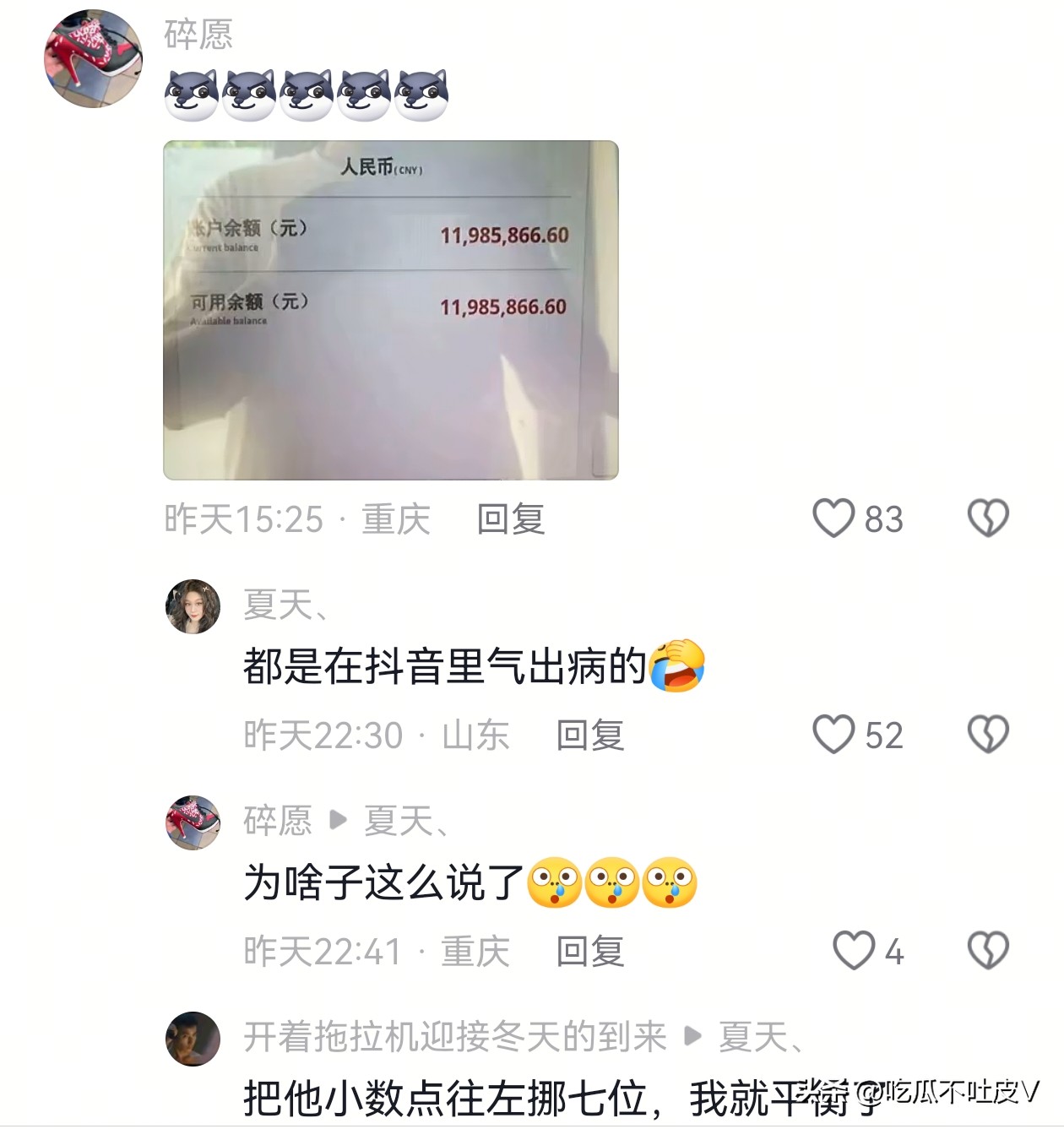 以后晒银行存款超过这个数字的就别晒了,现在挣钱多难啊,就别来刺激我们了,自己在家乐呵就行了!