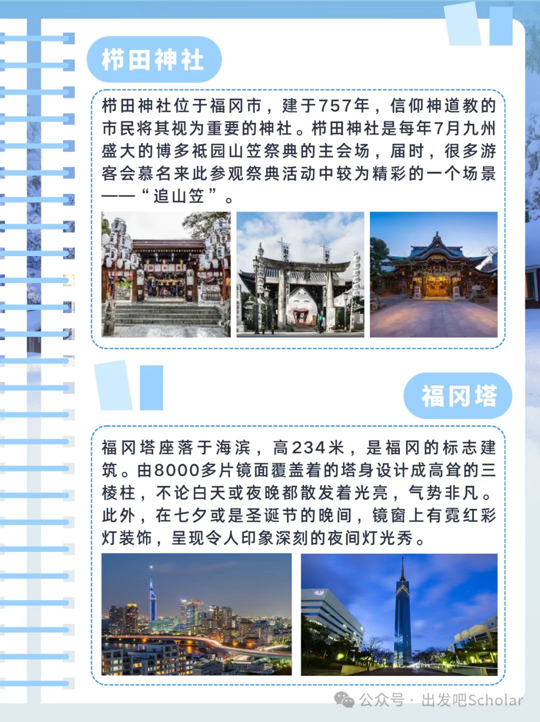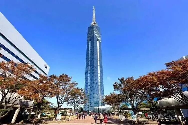 福冈塔座落于海滨,高234米,是福冈的标志建筑。由8000多片镜面覆盖着的塔身设计成高耸的三棱柱,不论白天或夜晚嘟 散发着光亮,气势非凡。此外,在七夕或是圣诞节的晚间,镜窗上有霓虹彩灯装饰,呈现令 人印象深刻的夜间灯光秀。