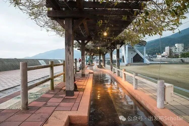 这是日本极其长的足汤,全长 105 米,因温泉温度高达 105 度而得名。足汤免费向公众开放,设有宠物专用区域,游客可以和宠物一起享受温泉。它位于海滨,游客可以一边泡足汤放松身心,一边欣赏橘湾的海景和日落。