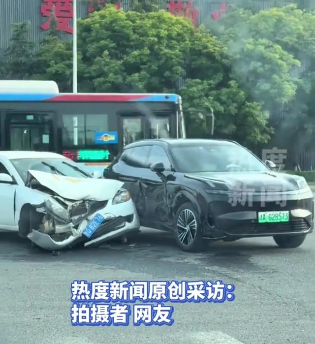 一位女子在路边偶遇了这“离谱”的一幕。只见两辆小汽车出了车祸,都被撞得面目全非。