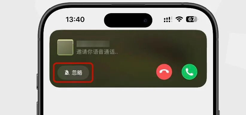 微信还给视频和语音通话悬浮通知加入了一个新的“忽略”按钮,位于“挂断”和“接听”按钮的左边,它的核心作用是:静音 + 最小化,但不挂断。