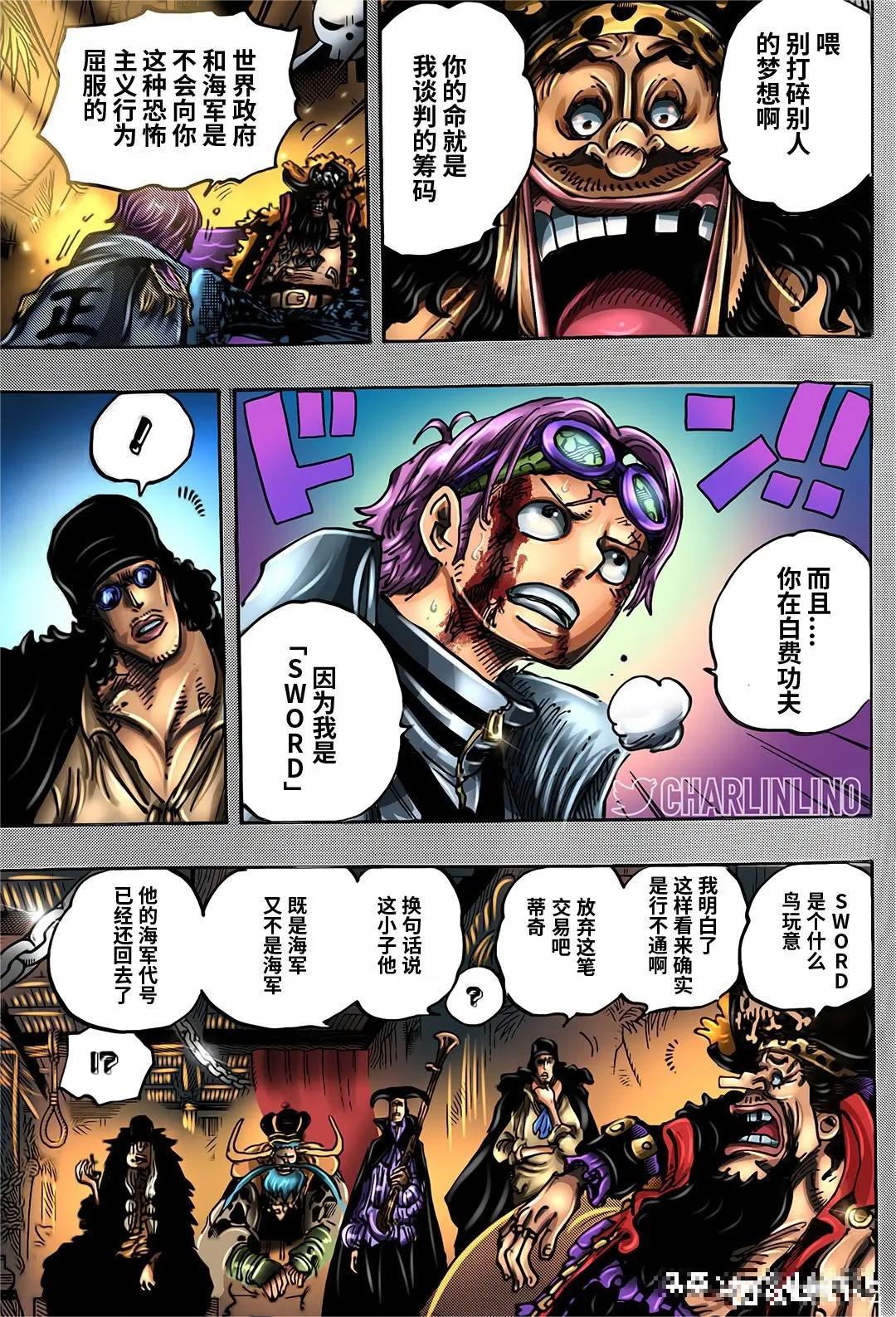 SWORD部队出动,普林斯·格鲁斯等拥有自然系与超人系能力的成员登场,轻松击溃海贼。克比在港口看到海军舰队降临,救援成功。皮萨罗嘲讽其英雄梦,克比坚定宣称自己是SWORD,誓不放弃