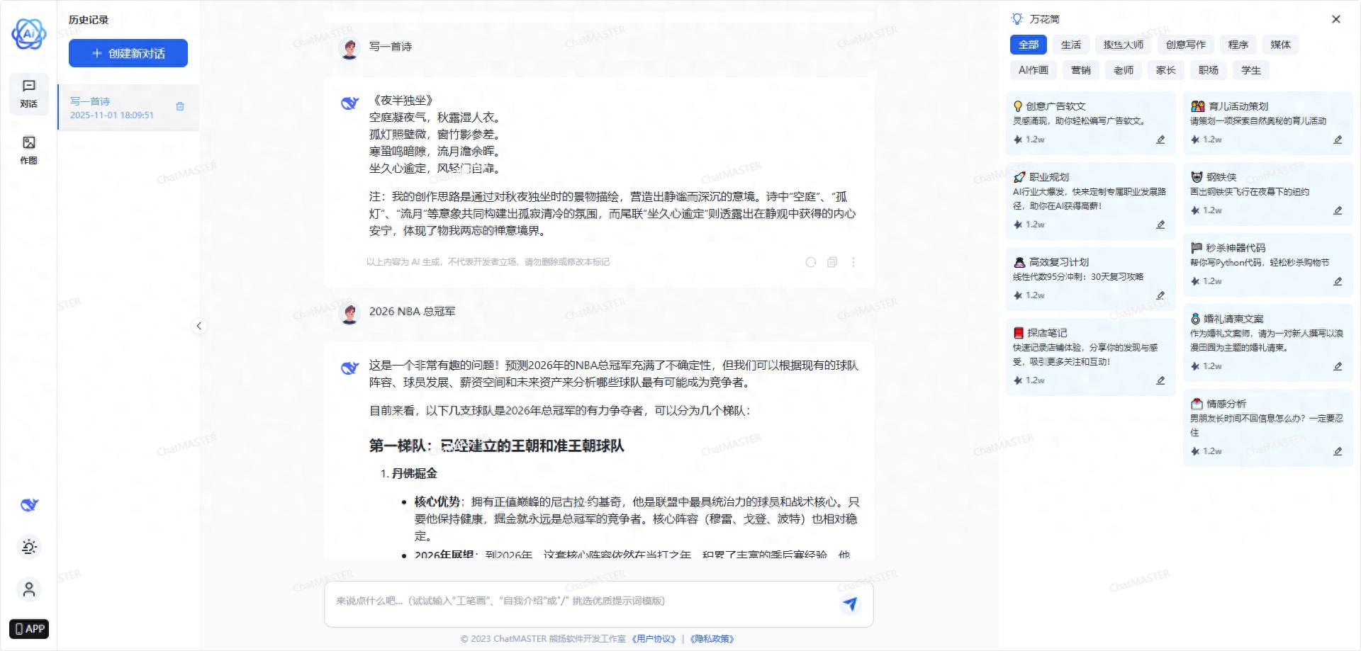 可以说,chat-master 提供了一套完整的 AI 对话管理平台服务,如果想自建一个 AI 助手平台,不妨试试~