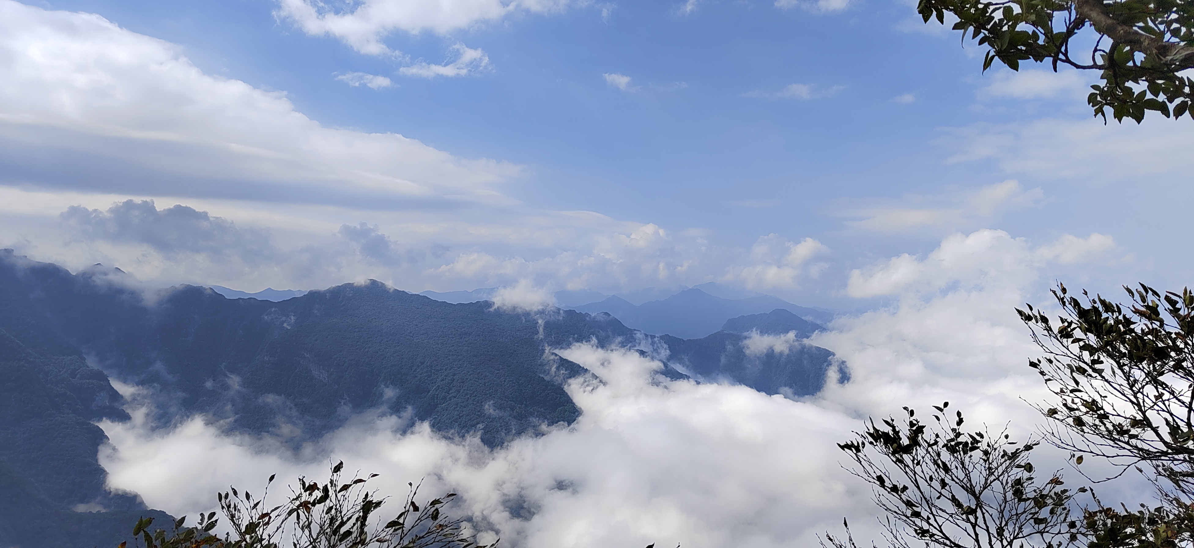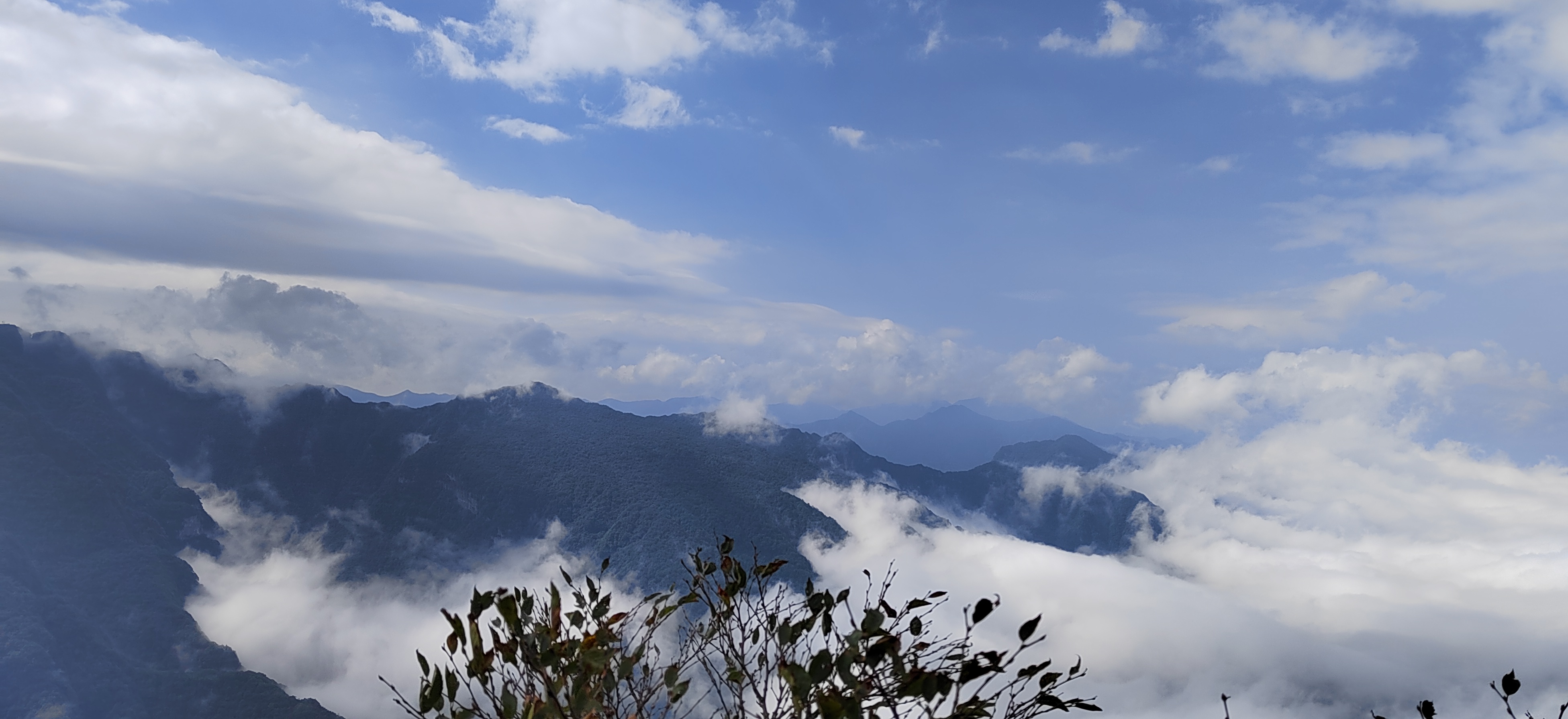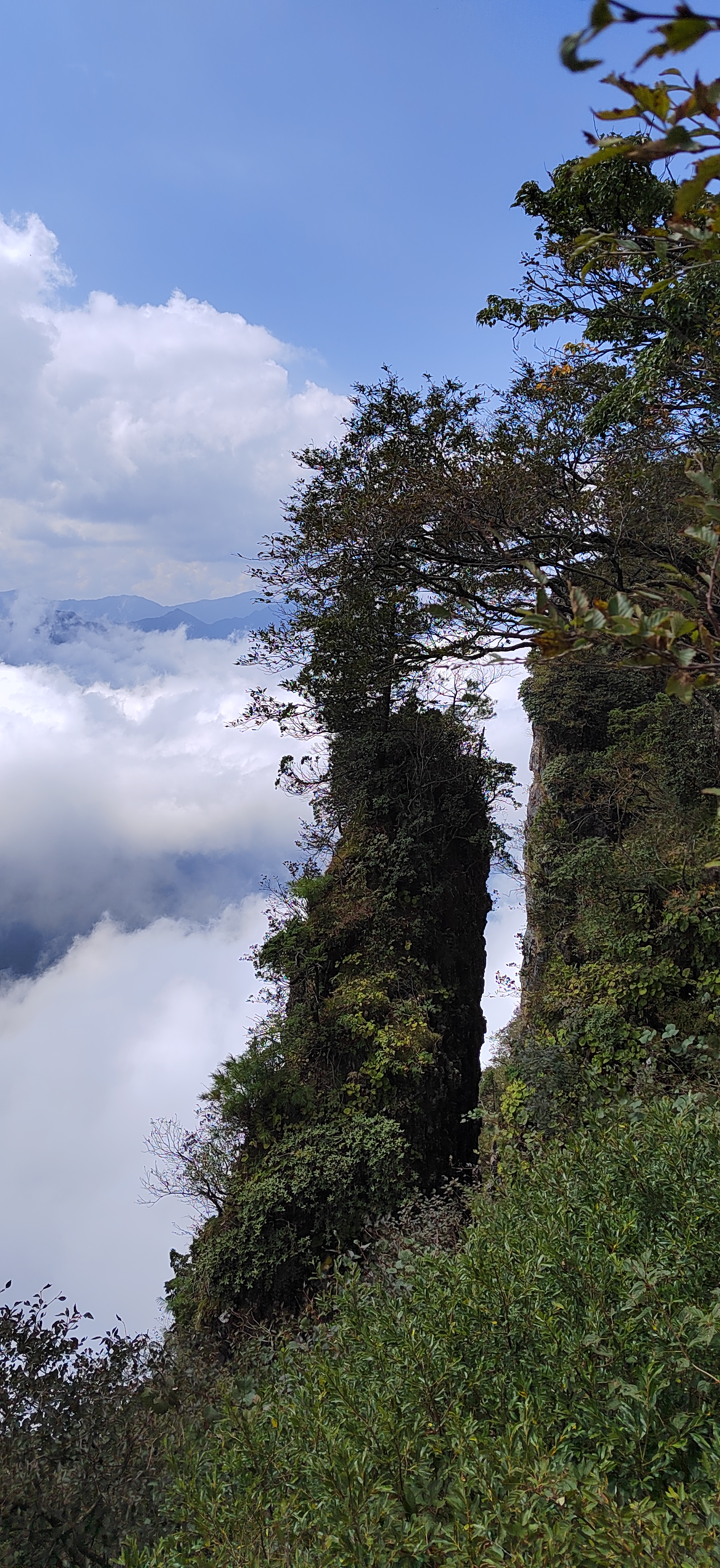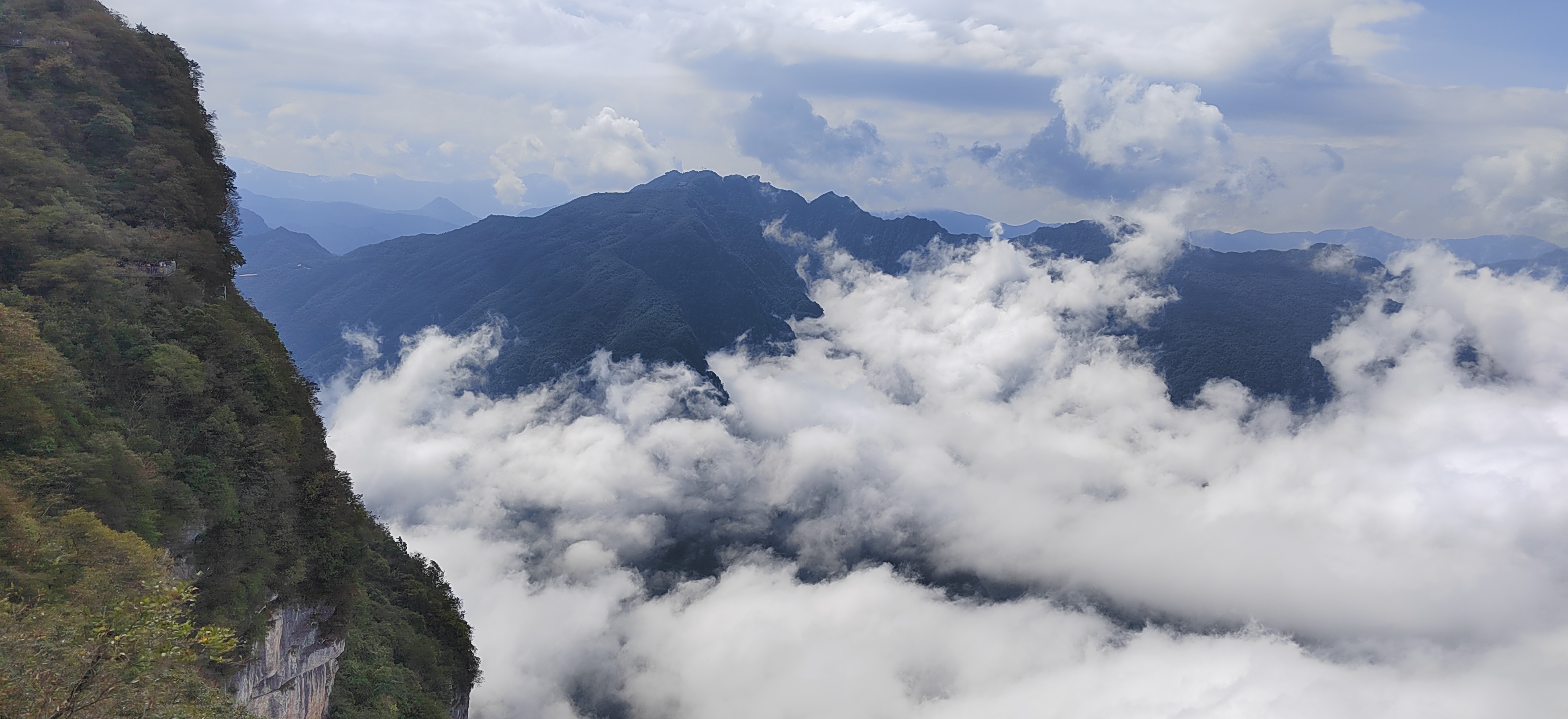 驻足观景台远眺,斑斓秋林与洁白云海相拥,红叶在云隙间忽明忽暗。待云雾稍散,远处峰峦轮廓渐显,与脚下流动的云涛相映,分不清是山在云中,还是云在山间。此景无言,唯觉尘心尽洗,只剩天地辽阔与云海温柔。