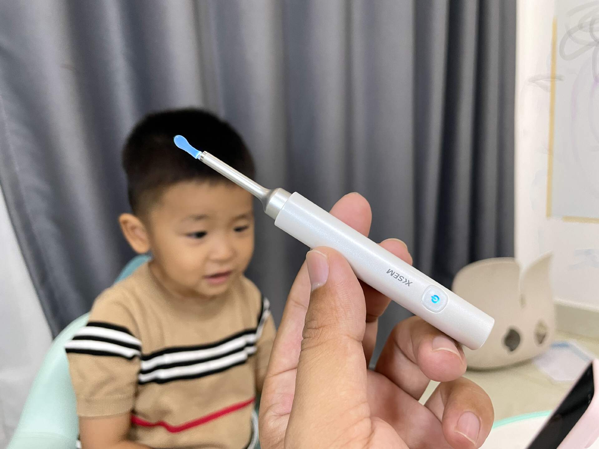小朋友立刻被吸引住了,瞪大眼睛,好奇地观察着,还主动要求我再看看另一只耳朵。这样的互动,不仅让清理耳道变得有趣,还增进了我们母子之间的感情。