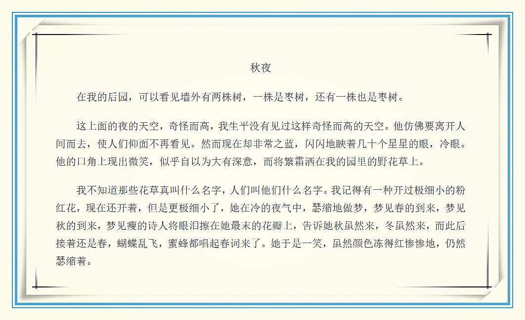 从整篇《秋夜》来看,鲁迅通过两株枣树的描写,实际上是在展示对抗的力量。枣树,作为抗争者的象征,通过“一株是枣树,另一株也是枣树”这种表达方式,强调了抗争的艰难和决心。在那个充满动荡的时代,抗争并不是一蹴而就的,每一个抗争者都像是一棵矗立的枣树,承担着责任和使命。通过这种表达方式,鲁迅巧妙地传达了,对于抗争者的尊重之情。