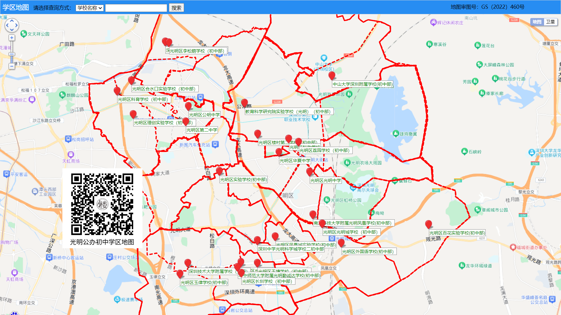 以上为光明区教育局官方发布的学区电子地图,通过电子地图查看到每个居住地段对应的中小学校,小楼在上图中添加了链接二维码,大家可以通过扫描二维码进入官网查看细化的对应信息。