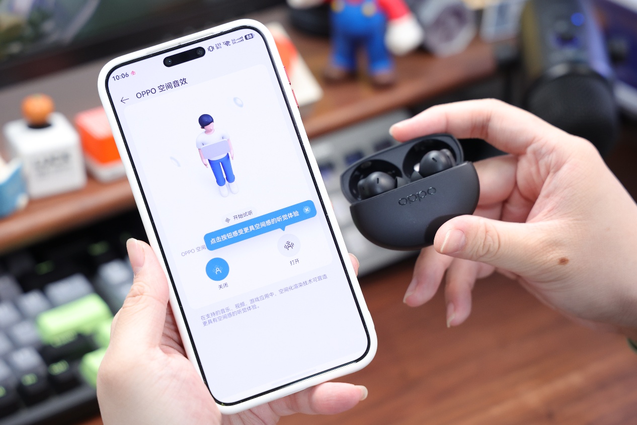 音质方面,OPPO Enco Air5 Pro也没有妥协,搭载12mm镀钛动圈,振幅比上代提升100%,低频澎湃有力,还获得Hi-Res金标认证,搭配不限设备品牌的全场景空间音效,不管是流行乐、人声还是器乐,都能呈现出细腻的听感,长时间听歌也不会觉得累耳。