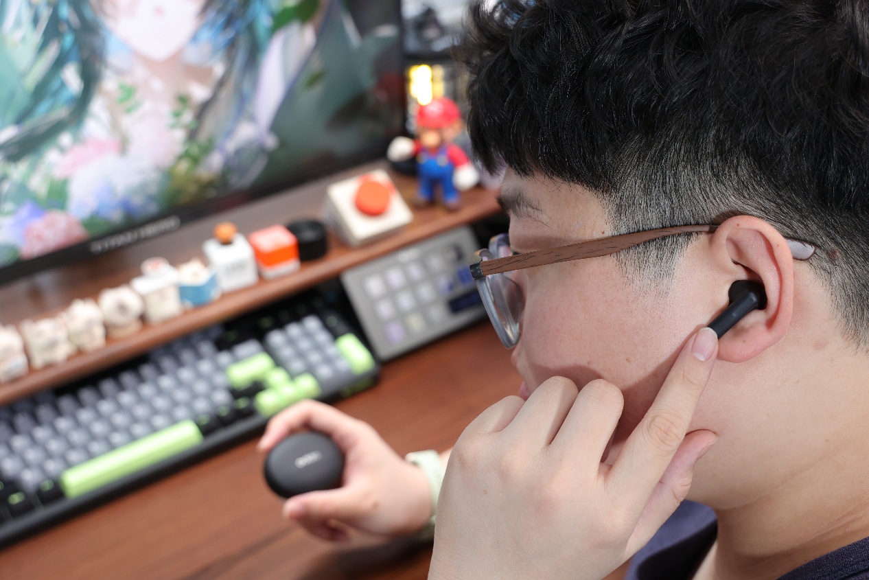 交互设计上,耳机带来了惊喜的滑动触控功能,左右耳机均可上下滑动调节音量,操作比传统点按更直觉、更丝滑,刚上手需要短暂适应,熟悉后就再也回不去。长按任意一侧耳机,还能一键切换降噪与通透模式,通勤、聊天无缝衔接,盲操也十分精准。