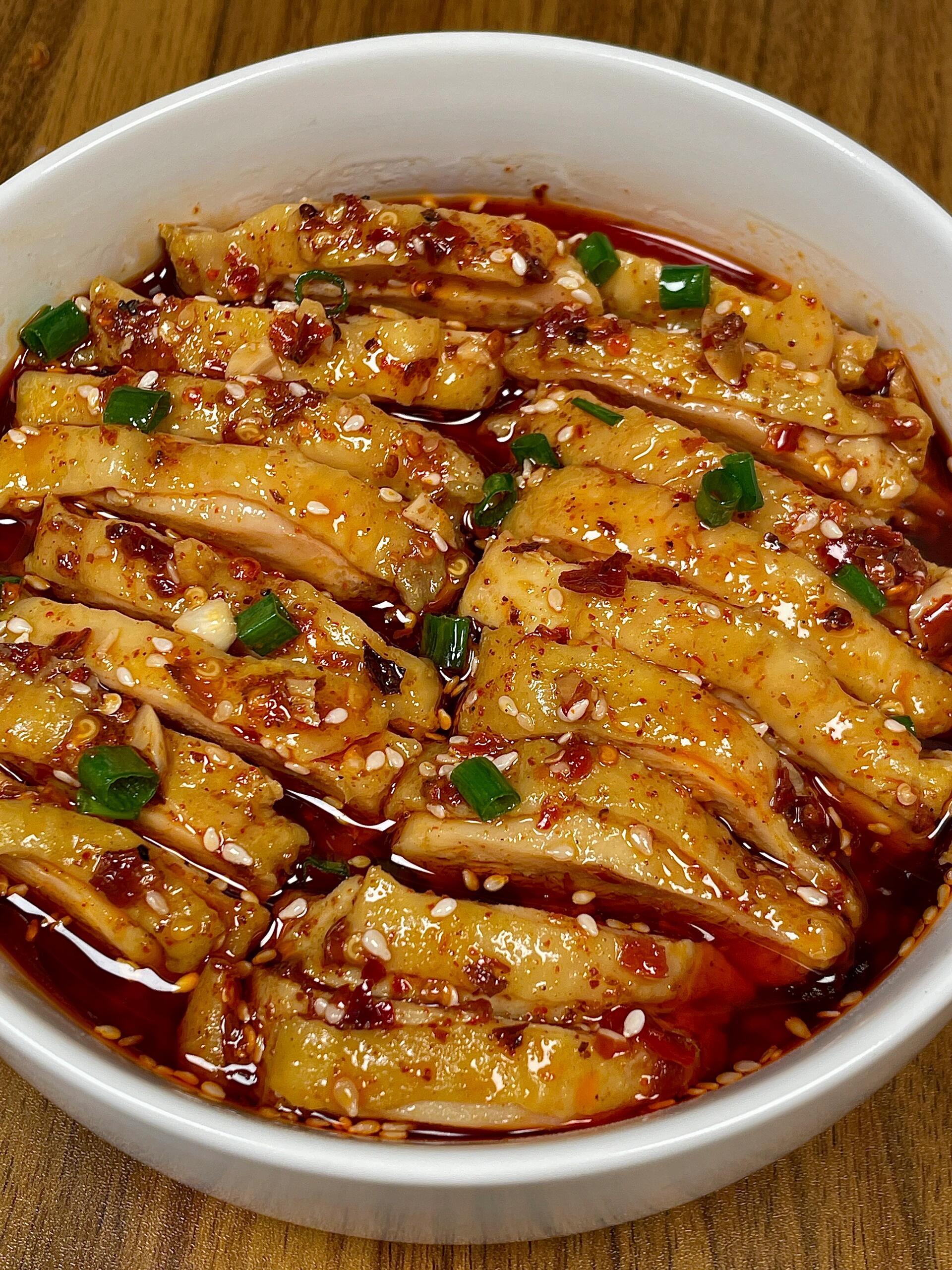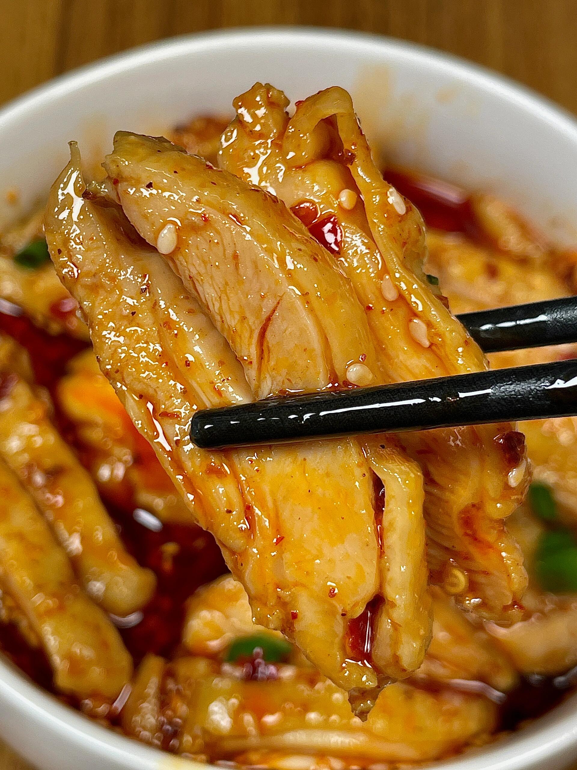 夹起一块鸡肉,红油顺着纹理缓缓流下,麻辣的香气扑鼻而来。入口先是感受到冰凉的鸡皮在齿间弹牙,紧接着嫩滑的鸡肉散发出浓郁的鲜香,红油的辣、花椒的麻、芝麻的香,最后还有一丝若有若无的回甘。配上一碗热腾腾的白米饭,那滋味,简直让人停不下筷子!