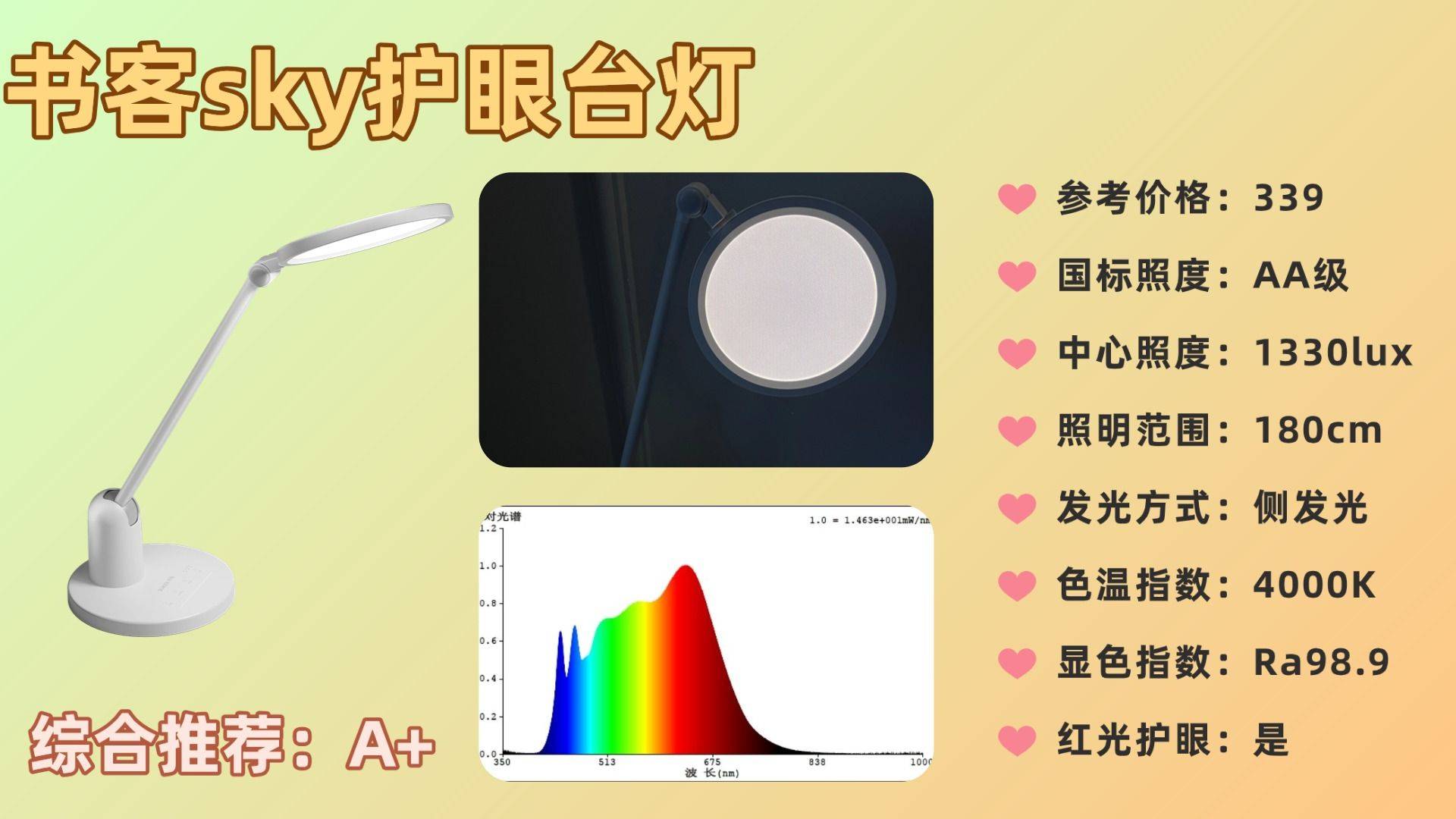 很多厂商引以为傲的“满分标准”,在书客这里只是起步门槛。书客以苛刻到变态的标准,做到Ra98高显色,色彩还原度直逼阳光;搭载PLP光电处理系统,让稳定耐用性提升146%,实测使用两年后光线性能衰减低于4.8%;严格符合RG0无蓝光、无频闪、无眩光等医学级护眼标准,真正做到零伤害光源。更配备超高角度自由调节、30秒、45分钟、60分钟定时休息提醒等多项人性化功能,不仅照亮桌面,更照顾孩子的用眼节奏。其综合表现远超同价位甚至部分高价位台灯,稳坐百元价位内护眼台灯领域的天花板级位置。