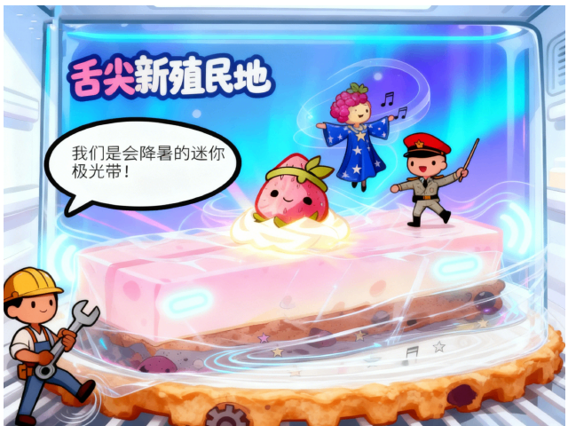 每条隐藏文明:【脆底工程师】掌管结构力学、【乳酪魔法师】调控绵密指数、【莓果指挥官】主导酸甜奇袭。三位在保鲜膜里共跳宇宙华尔兹,顺便把人类舌尖当作新殖民地。