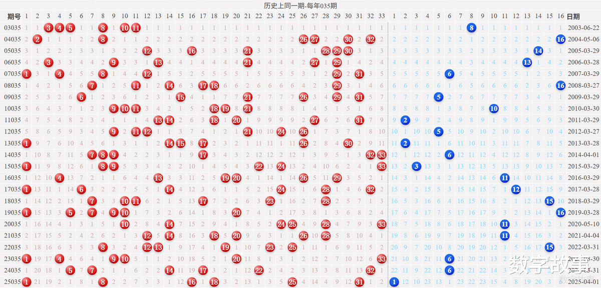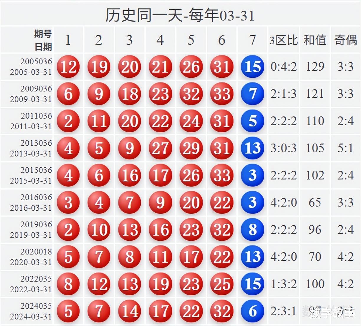 博弈心理,挑战概率: 看近期开奖号码,也可看历史数据统计!【双色球26035期多角度冷热号】双色球26035期四维走势图,红蓝号统计及冷热号1) 历史同一天: 03月31日 (共10期)