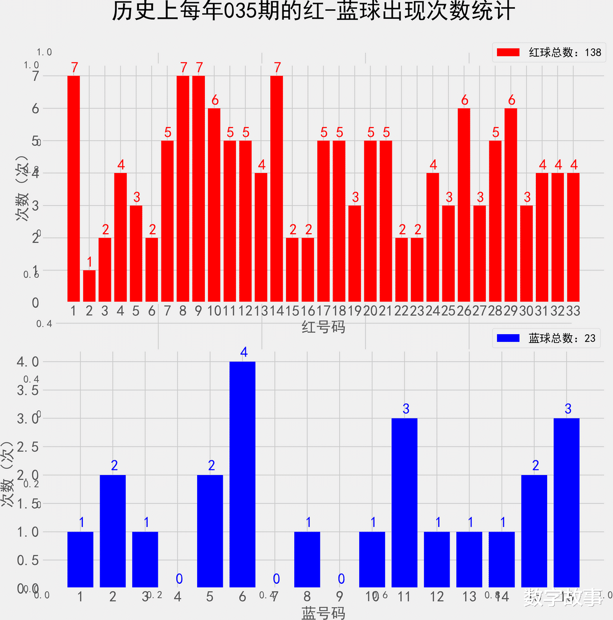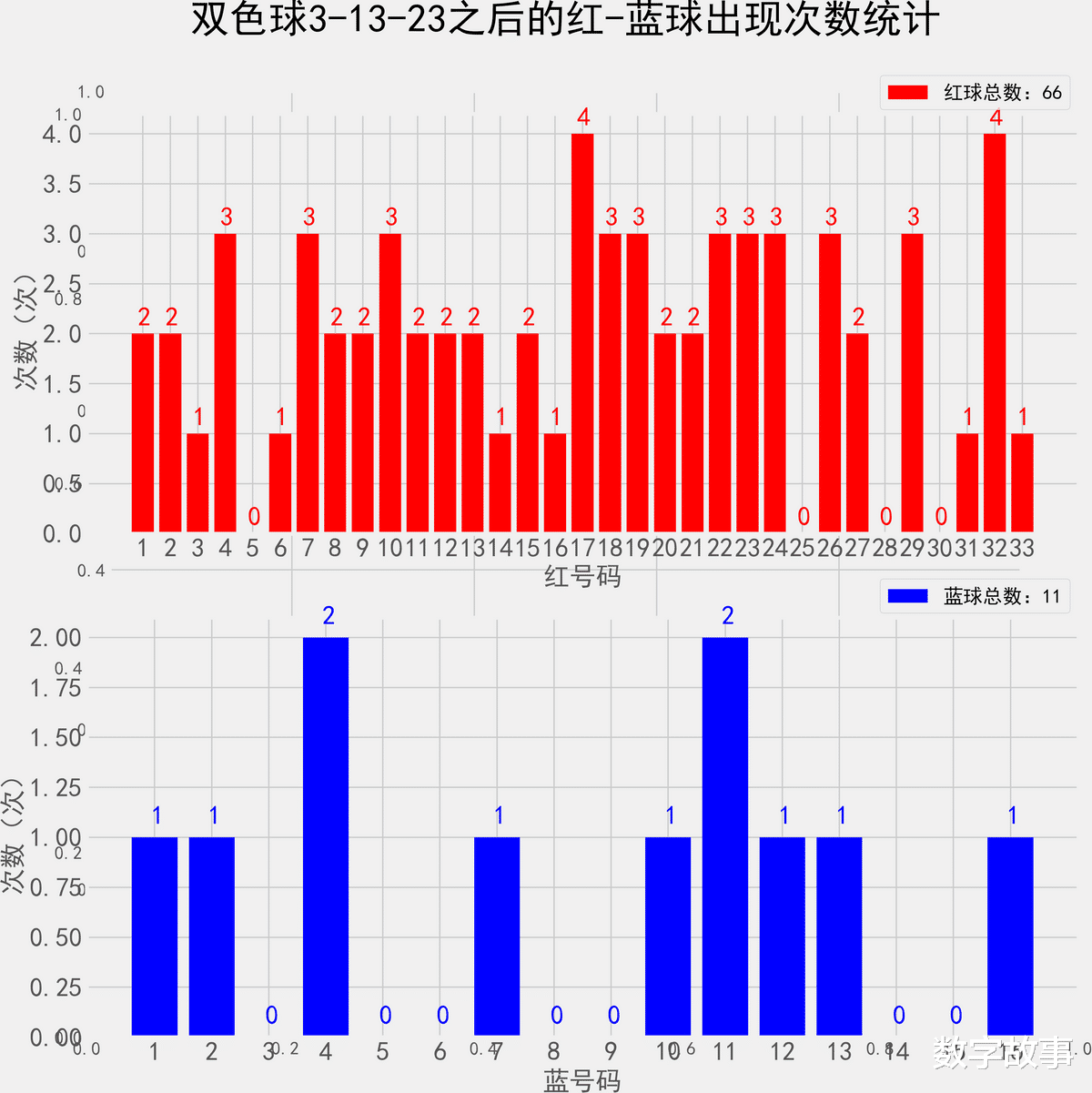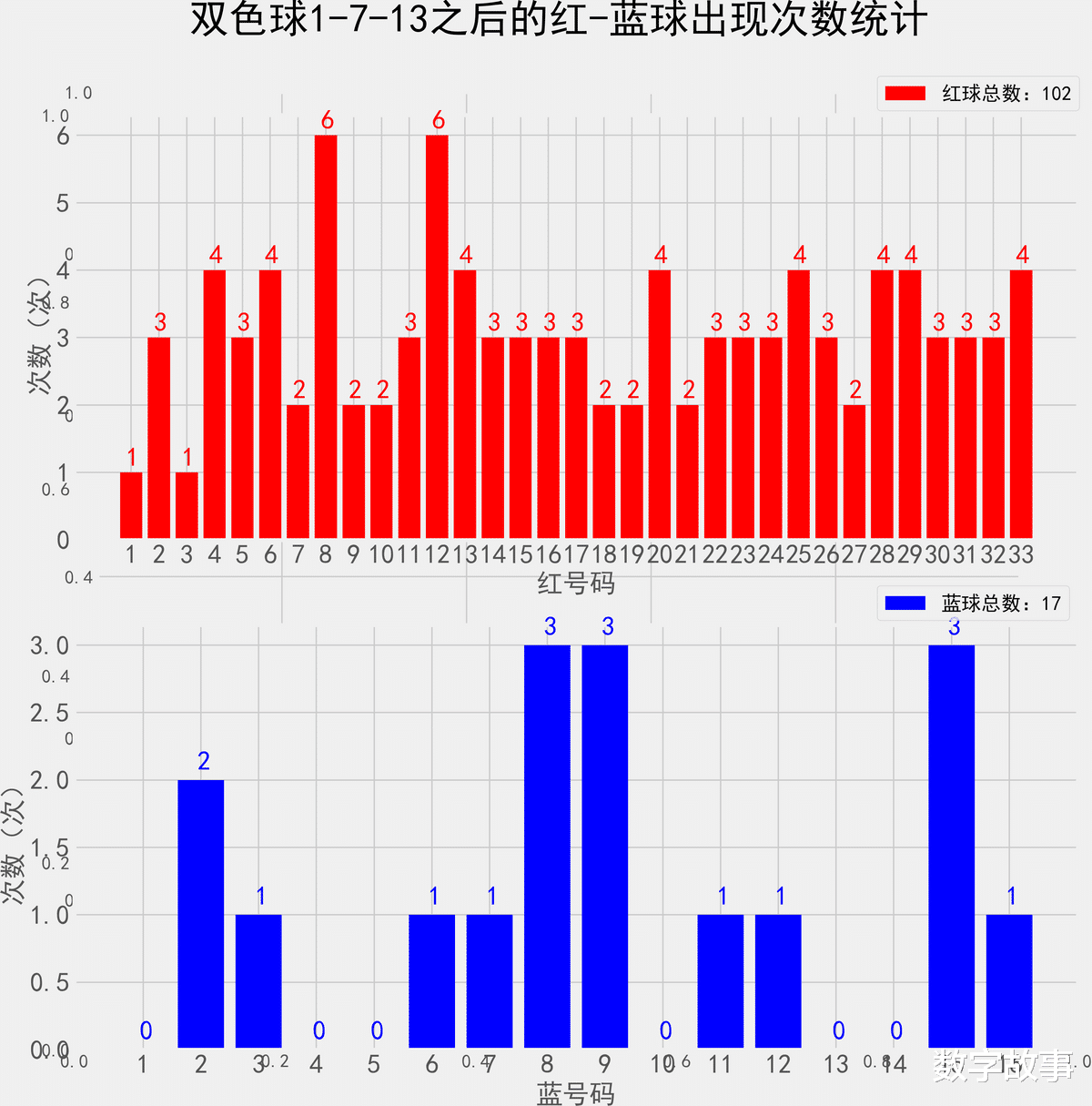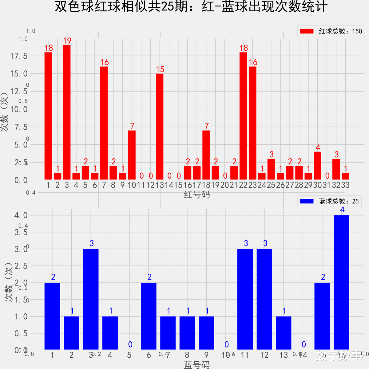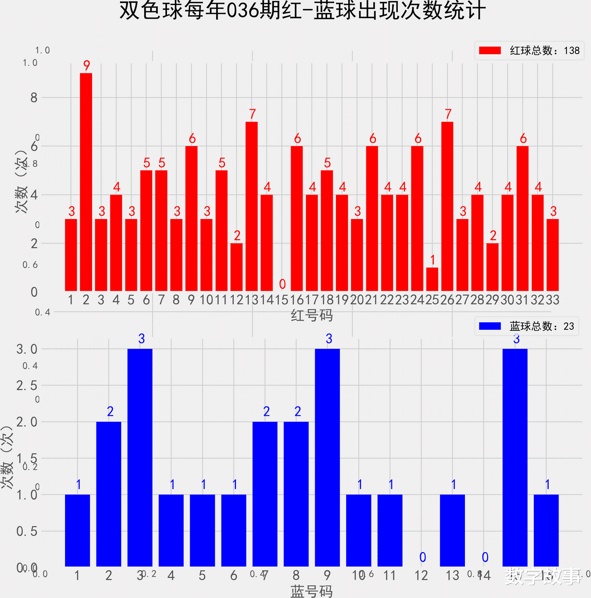 双色球近100期红蓝号统计情况统计样本数据: 600个红球 100个蓝球