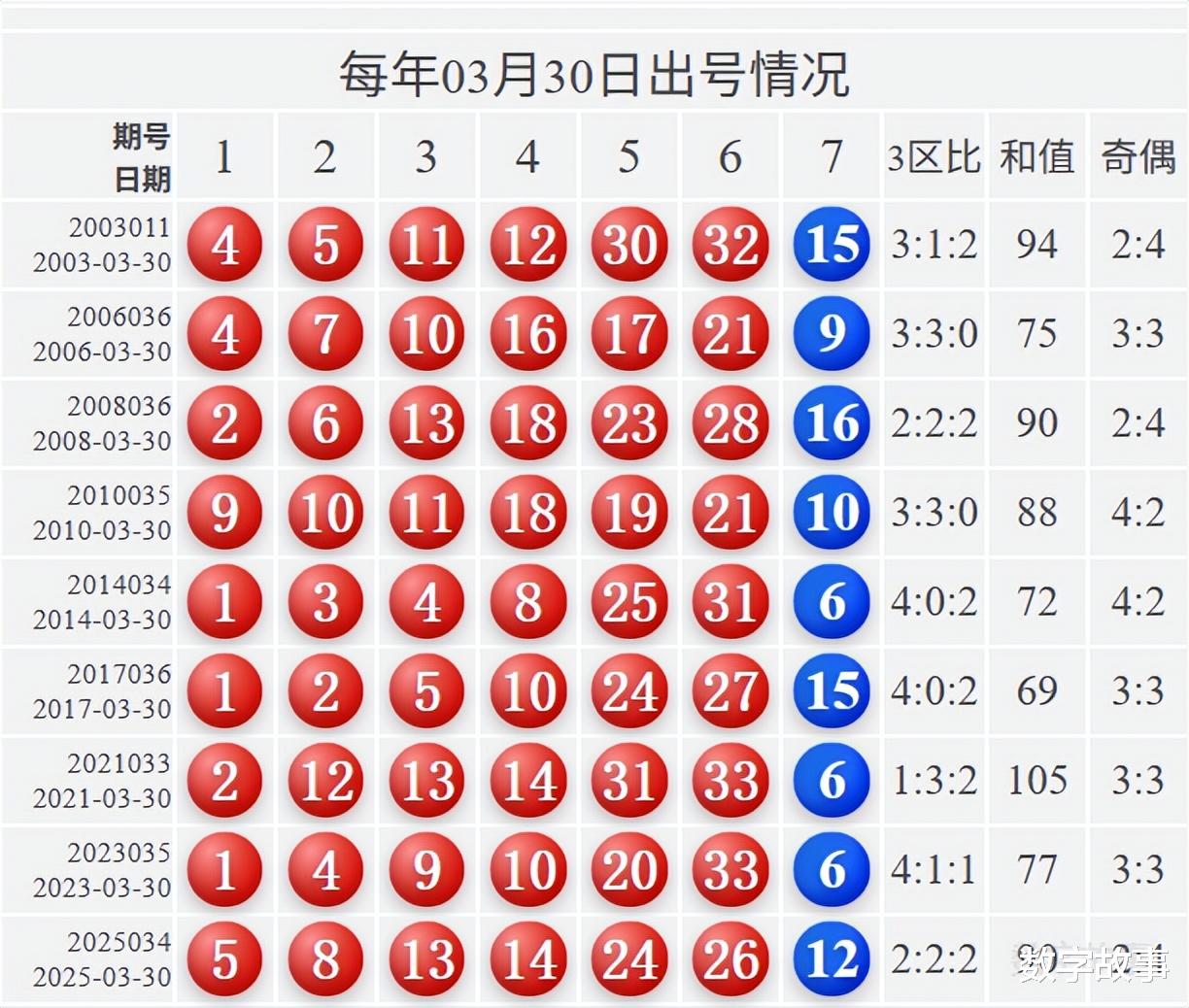 【其他历史数据查询统计】双色球历史上的今天|2026-03-30 星期一 双色球不开奖每年03月30日出号情况: