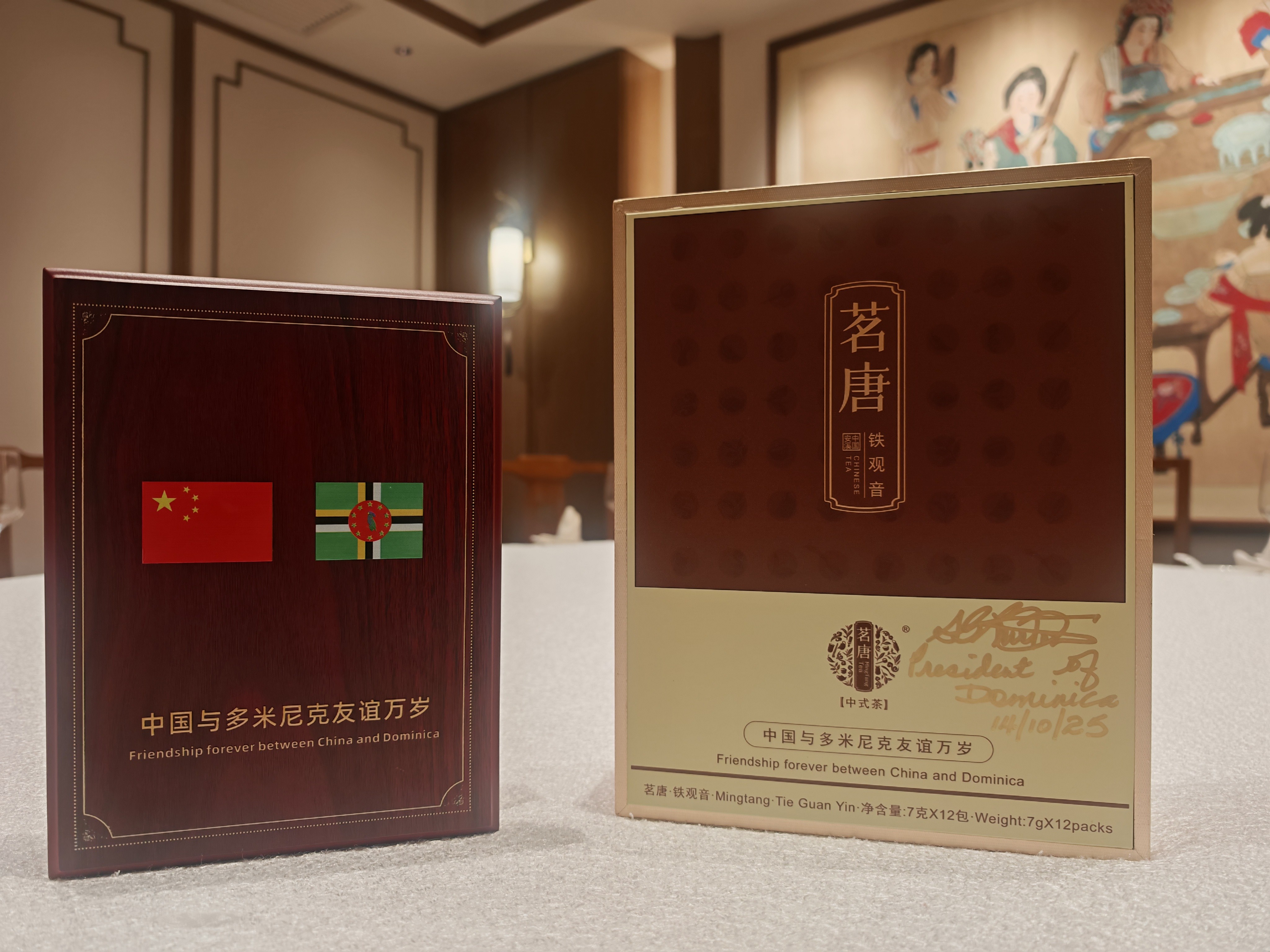 10月14日下午福建茗唐茶业有限公司董事长暨茗唐中式茶连锁品牌创始人薛锦山作为中方唯一代表受邀莅临多米尼克驻华大使馆拜会多米尼克总统伯顿,接见期间总统亲签留念茗唐®中多友谊茶礼及友谊勋章,伯顿总统夫妇向薛锦山先生颁授中多友谊勋章,表彰其对促进中多对话与和平的卓越贡献。