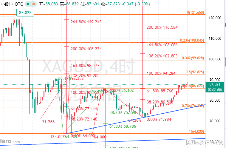 白银短期保持强势,日内支撑重点85-85.5区域,短期87适当关注,上方阻力短期89-90美元以及92-93美元,重点阻力在96-97美元以及100-101美元。日内操作上,同步黄金,带好损!白银中长线需要注意:当前白银已经是牛皮市,而非今年1月底以前那种持续半年之久的轰轰烈烈的大牛市;所以,不看好走太高,关注冲高回落!27日的视频和2月8日的文章都有分析!