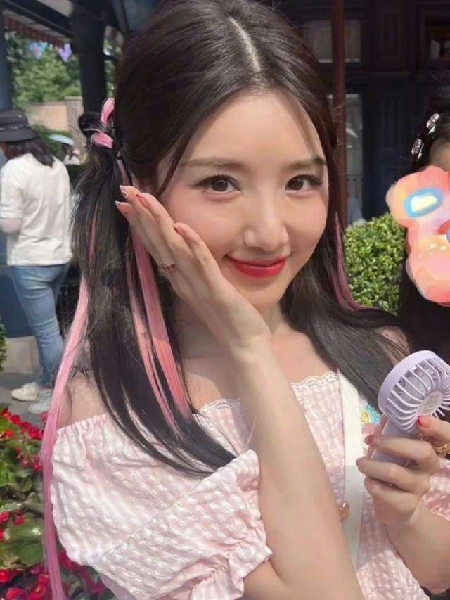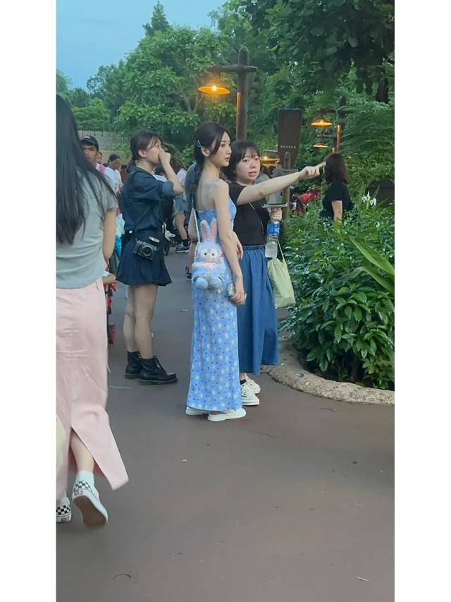 前阵子就有网友在迪士尼偶遇她,她穿了一条蓝色长裙,没有浓妆艳抹,素面朝天也难掩精致五官。