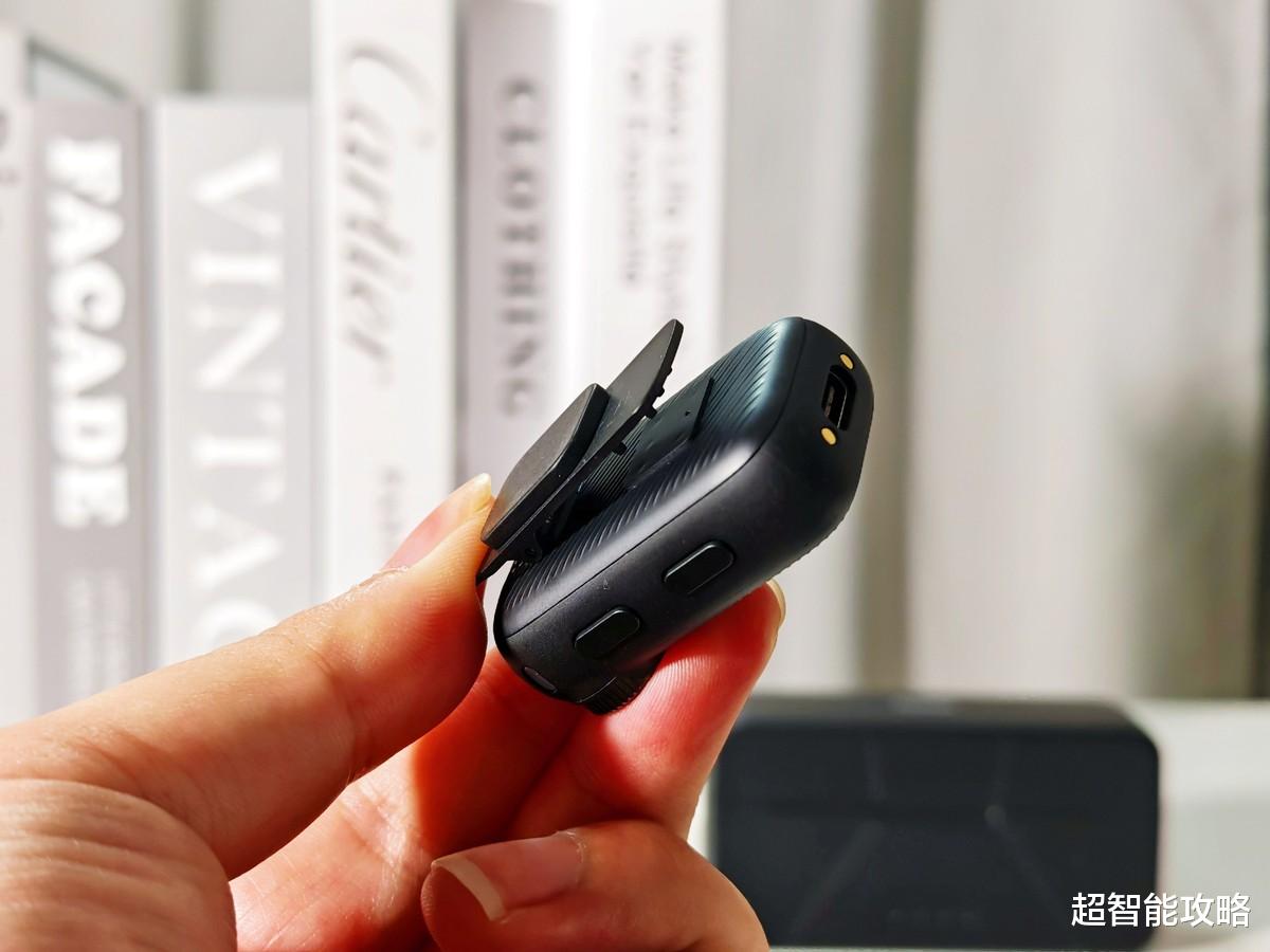 值得一提的是领夹的细节,它采用可旋转的金属材质,开合角度可达120度,内侧还做了防滑纹路。我试过把它夹在厚毛衣、薄衬衫甚至运动速干衣上,都能牢牢固定,拍摄时走动、转身也不会移位。而且领夹的开合力度很适中,既不会松到脱落,也不会紧到夹皱衣服,对注重画面细节的创作者来说,这种“不破坏穿搭质感”的设计太贴心了。