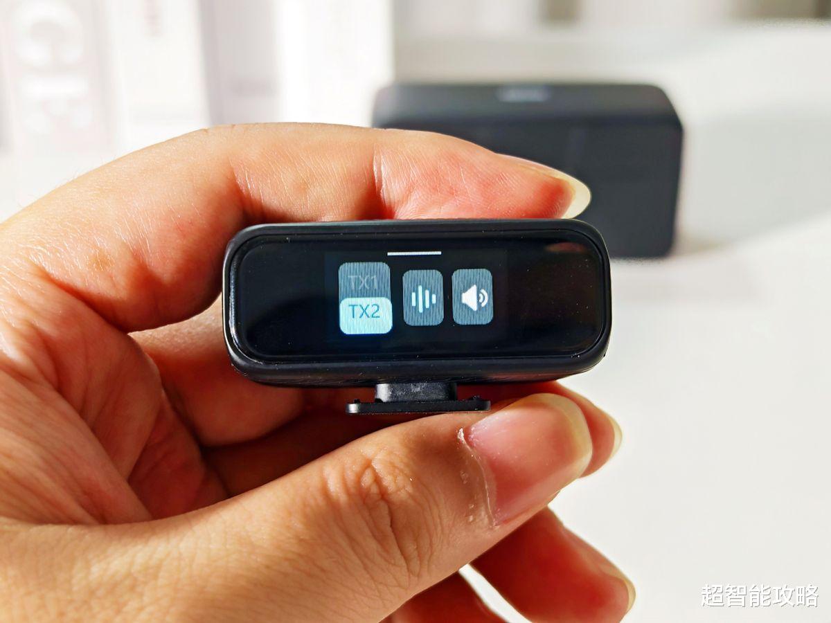 接收器的设计也是点睛之笔。它采用横向长条造型,正面是一块1.2英寸的高清触控屏,屏幕亮度在强光下也能清晰显示,再也不用像用传统麦克风那样“盲操作”。触控屏下方只有一个Type-C接口,兼顾充电和数据传输,侧面则隐藏着3.5mmTRS耳机接口,用来连接监听耳机——这种一体化设计让接收器看起来很简洁,揣在口袋里也不会有多余的线晃来晃去。