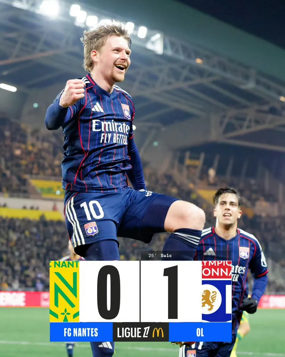 里昂 1-0 南特里昂(42分)客场小胜,如愿拿到3分,巩固了联赛第三的位置,并继续向身前的朗斯施压。