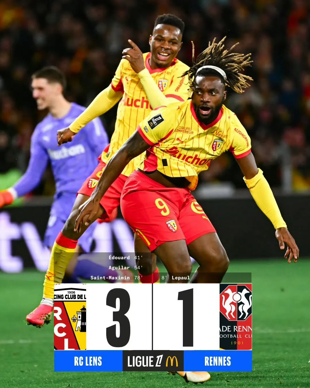 朗斯 3-1 雷恩朗斯(49分)在主场拿下关键胜利,全取3分,继续以2分之差紧咬巴黎,保持了冠军悬念。这场胜利也稳固了他们对身后球队的领先优势。