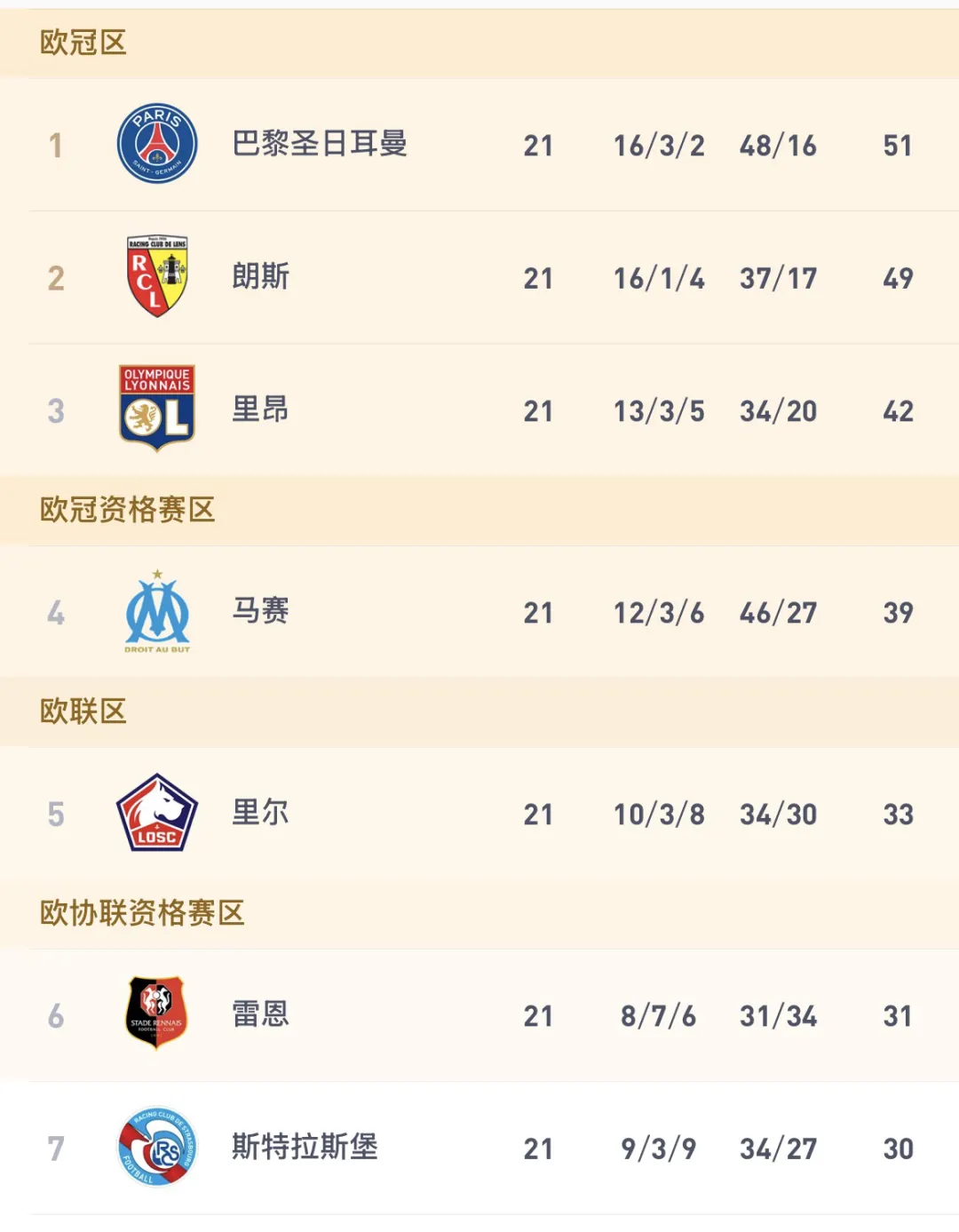 2025/26赛季法甲21轮全部比赛结束,本轮多场关键对决,直接重塑了争冠、欧战和保级的形势。