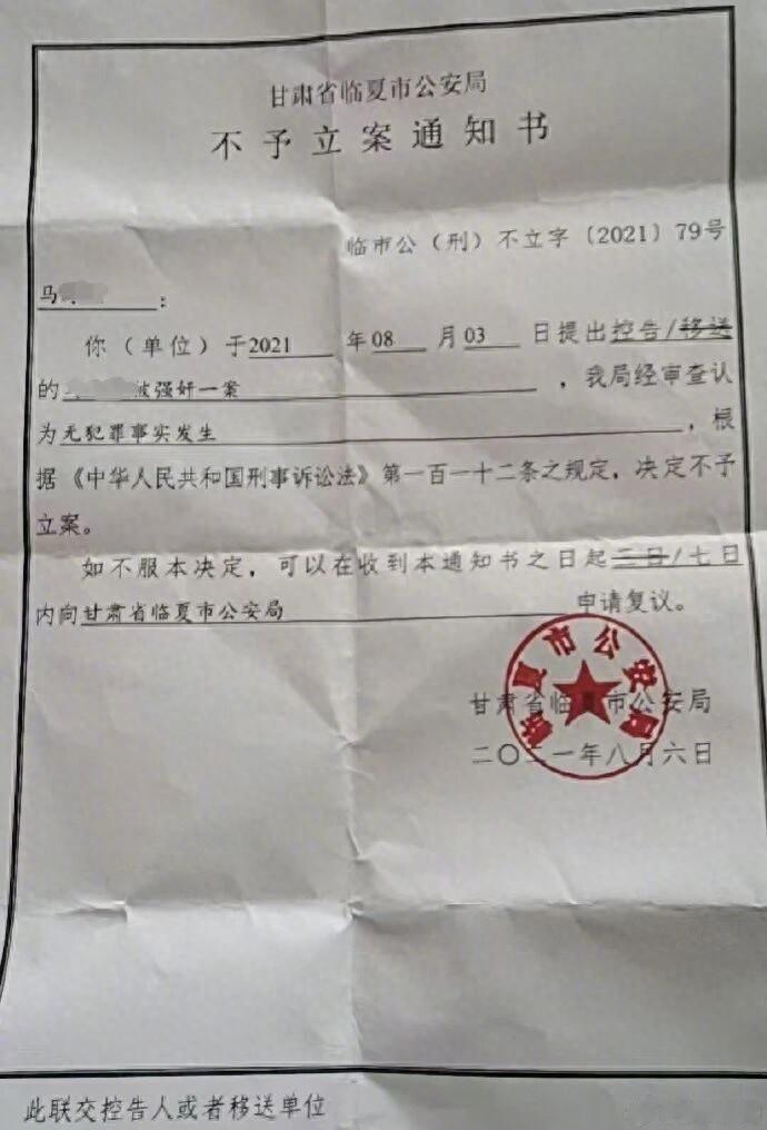 12岁的女孩小燕(化名)独自离家,去城里见网友,对方称会带她去公园玩。此后三天,女孩经历了噩梦般的遭遇——先后被3名男子多次性侵。这是2021年发生在甘肃临夏的奸淫幼女案。案发后,临夏警方曾以“无犯罪事实发生”不予立案。此事经媒体曝光后,临夏州成立联合调查组展开调查,多名犯罪嫌疑人被逮捕。2023年4月,涉案的4名男子均被法院以强奸罪判刑,二审维持原判。此外,临夏州纪委监委对检察、公安机关12名公职人员进行了问责处理。对于当年曾经“不予立案”的公安办案人员,小燕的叔叔马建强(化名)提出控告——他认为办案民警涉嫌渎职犯罪。2025年3月,临夏州检察院经审查后,认定相关民警“不构成犯罪”,决定不予立案。此后马建强申请复议。2025年12月,甘肃省检察院作出复议决定,维持了临夏检方的不立案决定。