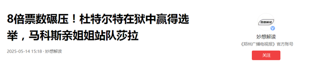 现实却给了他一记响亮的耳光。老杜人虽然可能面临牢狱之灾,可在他老家达沃市的市长选举中,居然以碾压性的票数(初步看是40.5万对4.9万,甩对手好几条街)来了个“王者归来”!