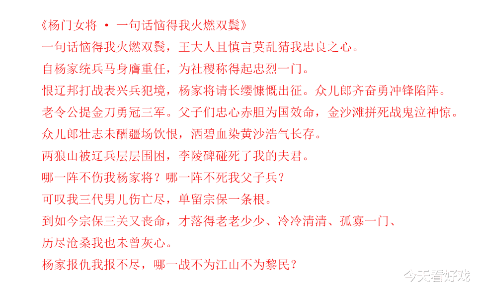 实在不行,去听听《四郎探母·见娘》跟《杨门女将·一句话恼得我火燃双鬓》的唱段。人家就没有一个字是多余的。