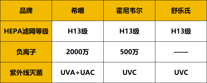 希喂:H13 HEPA+UVA+UVC双波段+约2000万级负离子,完整三重防护,实验条件下灭菌率顶格。