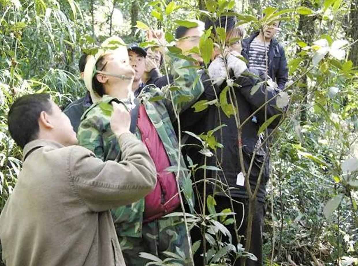 一支由云南当地的自然区管理局和植物学专家组成的考察队,正在保护区的山上进行植物调查。