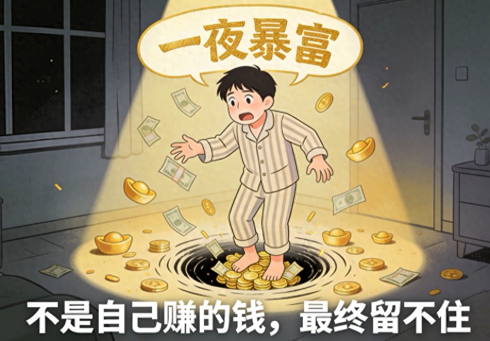 不是他们“运气不好”,是他们的大脑从来没被训练过“如何与钱相处”。突然到账的几千万,就像一个从没学过游泳的人,一下子被扔进深水区——扑腾几下就沉底了。