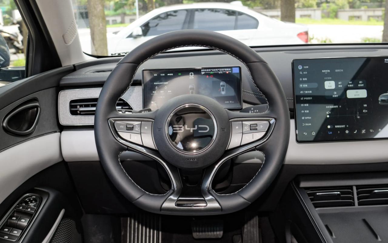 在内饰的设计上,我们同样看到了很多海洋仿生美学的设计,线条走势优雅流畅、干净利落,环抱式座舱、精致的多功能方向盘等设计元素,质感相当出众。中控台上配备了8.8英寸全液晶仪表和12.8英寸中控大屏,比亚迪Dilink车机系统带来了全场景可见即可说的智能语音控制和交互,同时还带来了远程控制、手机互联、车载K歌等功能,L2+级驾驶辅助也是全系标配,支持高速自动领航辅助、主动刹车等功能,智能化程度相当高。