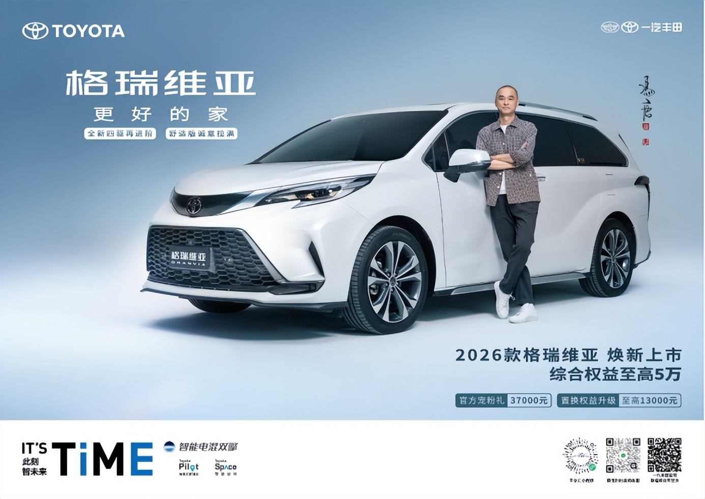 这个金秋,一汽丰田以丰厚购车大礼与两款重磅焕新车型,将先进科技与人文关怀深度融入用户生活的每一个细节,为美好出行赋予更多新可能。正如 2026 款格瑞维亚的产品口号,一汽丰田始终与用户同行,从 “我们的家” 出发,迈向 “更好的家”,携手创造美好回忆,共同驶向更值得期待的新远方。