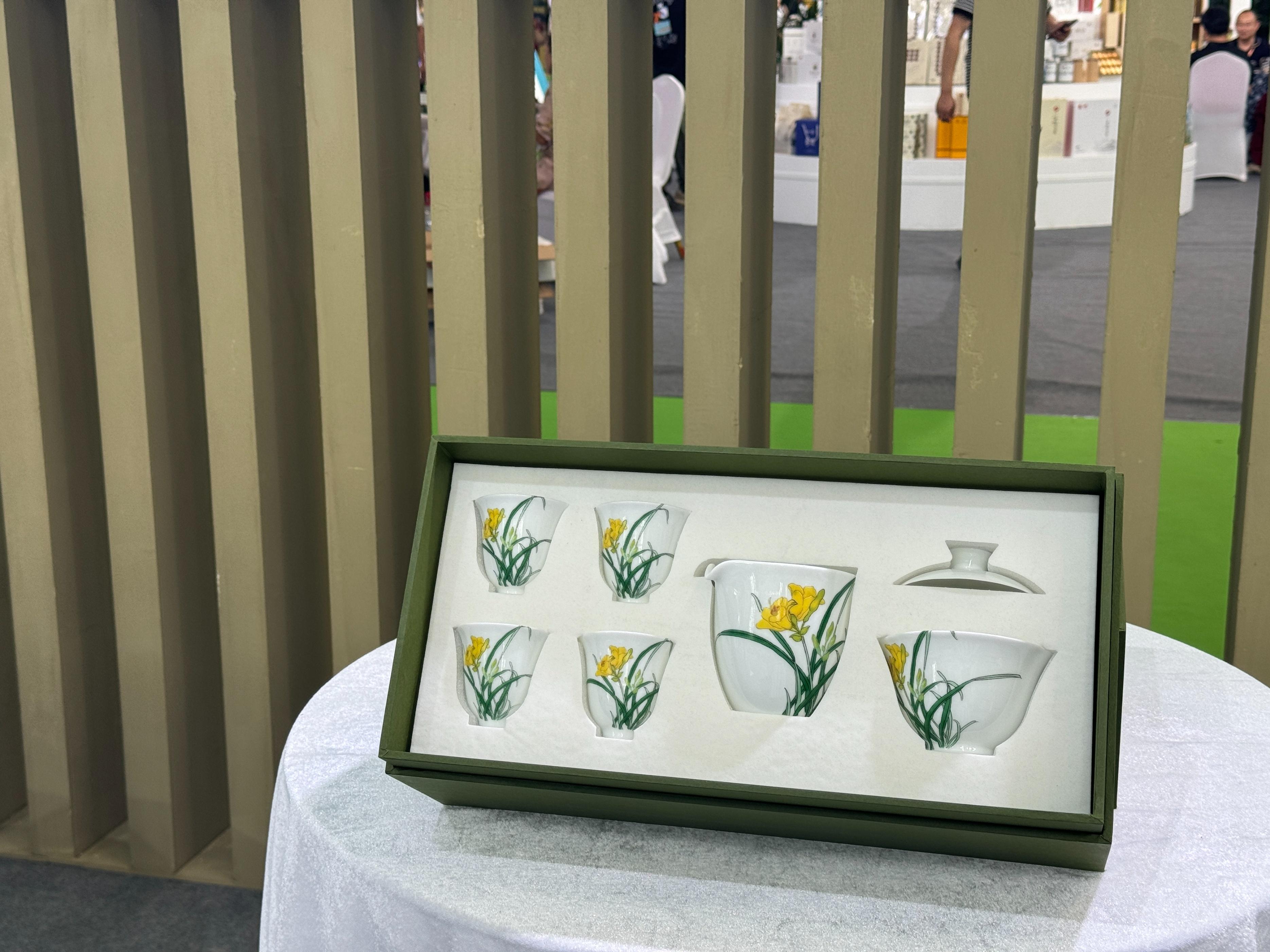 博览会现场,这套文创产品以其独特的艺术魅力和深厚的文化底蕴,吸引了众多茶友及文化爱好者的驻足观赏,成为连接湖南与世界文化的又一桥梁,进一步提升了湖南茶文化的国际影响力。