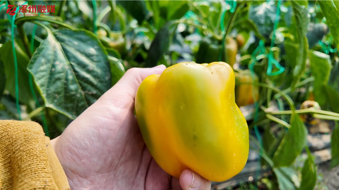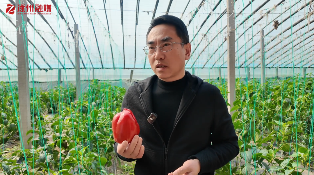 这个是我们推出的一个特色产品水果彩椒,这个是从去年2025年的9月、10月份批次种植了43个棚。总的种植面积,也就是实种的面积应该是在55亩,这个种植大概是10万株,它的这个生长周期是到今年的6月底。整个的预计产量应该是在90万斤。