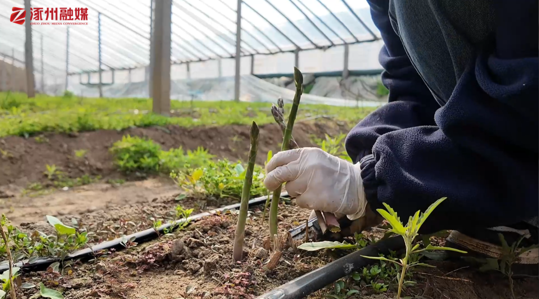 草莓从采收周期,是每年的12月底到来年的五一。芦笋是属于全年种植的,我们的鱼菜棚,是可以全年供应的。”