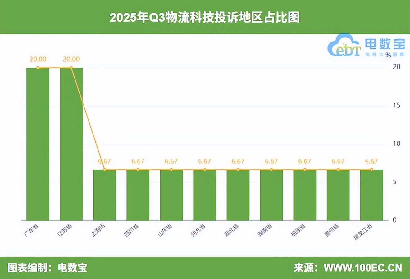 10月14日,网经社发布《2025年Q3物流科技投诉榜》(依据投诉量排行),该榜单依据国内网络消费专业消费调解平台“电诉宝”2025年三季度受理的全国用户消费纠纷案例大数据生成。